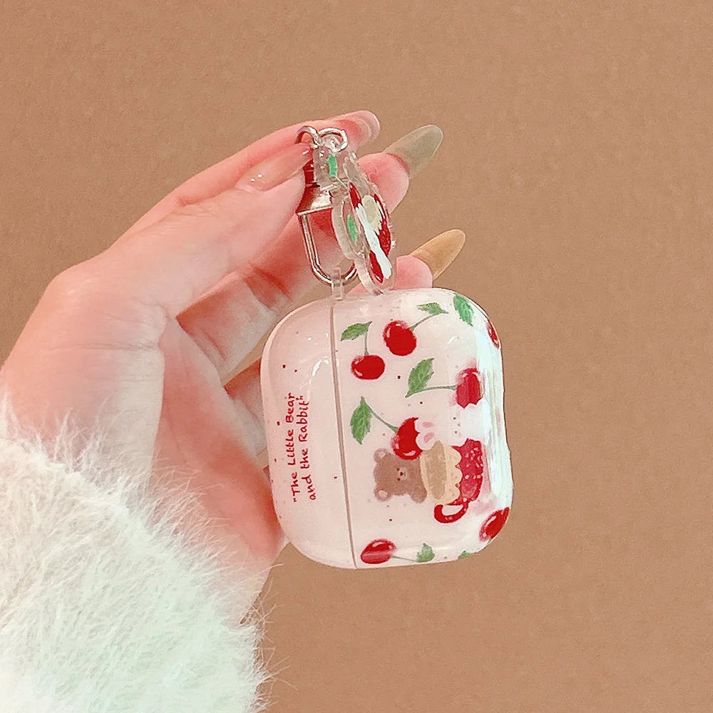 Cartoon Cute Cherry Little Bear Rabbit Silicone Headphone Case for Apple AirPods 1 2 3 4 Pro 2 Earphone Charging Box Keychain