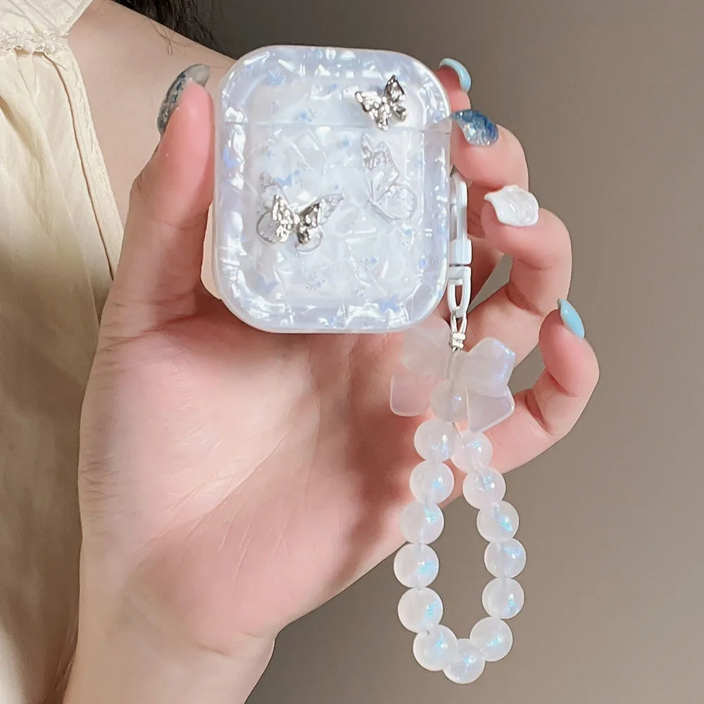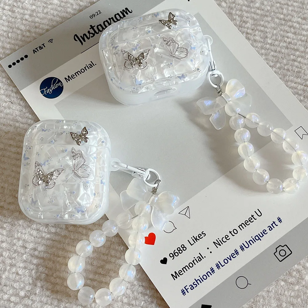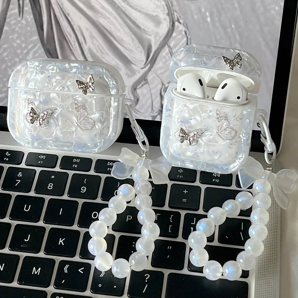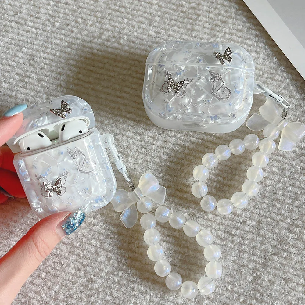 feature: Korean butterfly decorate bling shell case for AirPods 2 3 with keyring