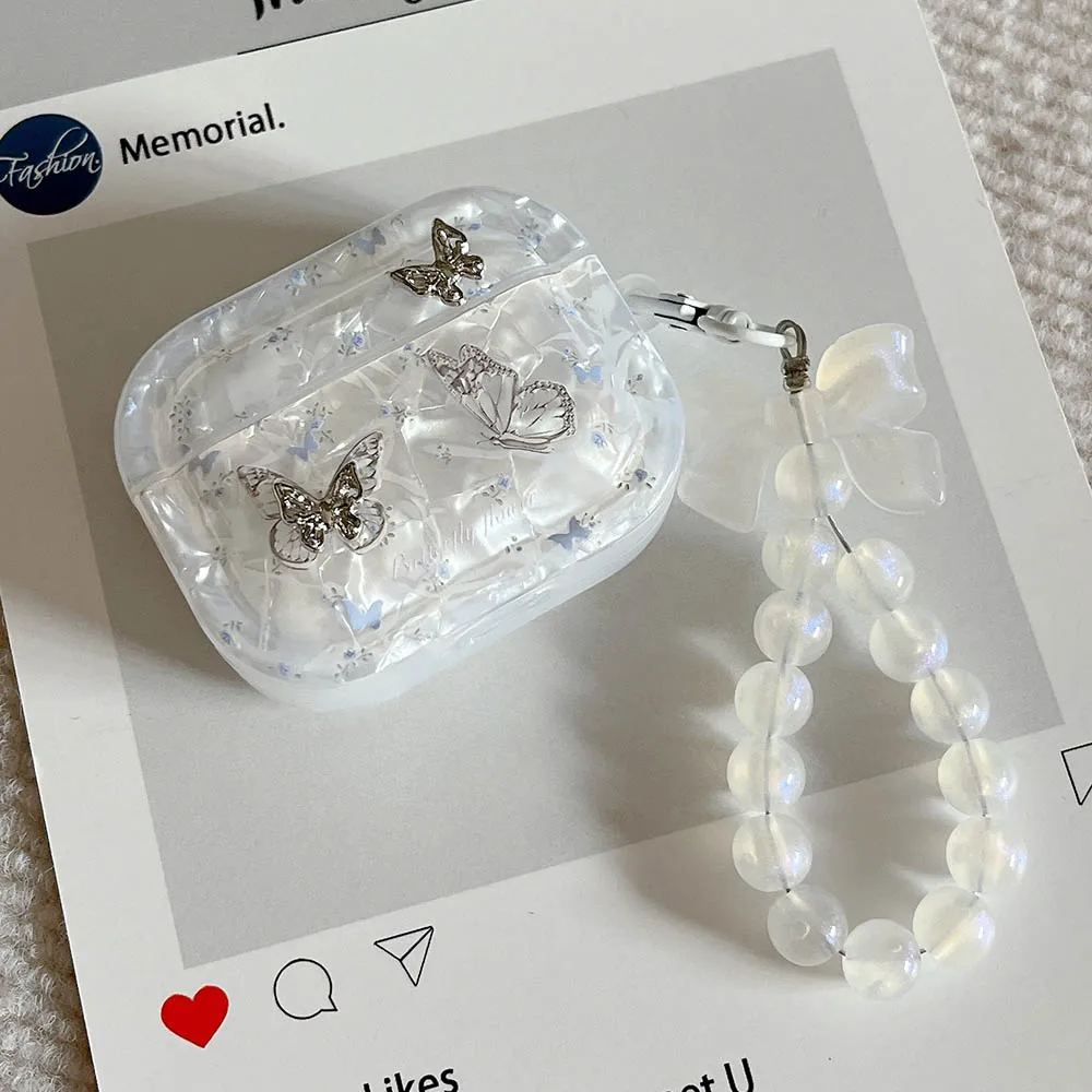 Case For AirPods 1 2 3 4 Flower Butterfly Shell Earphone funda For AirPods Pro 2 Soft Protective Cases with Bracelet Keychain