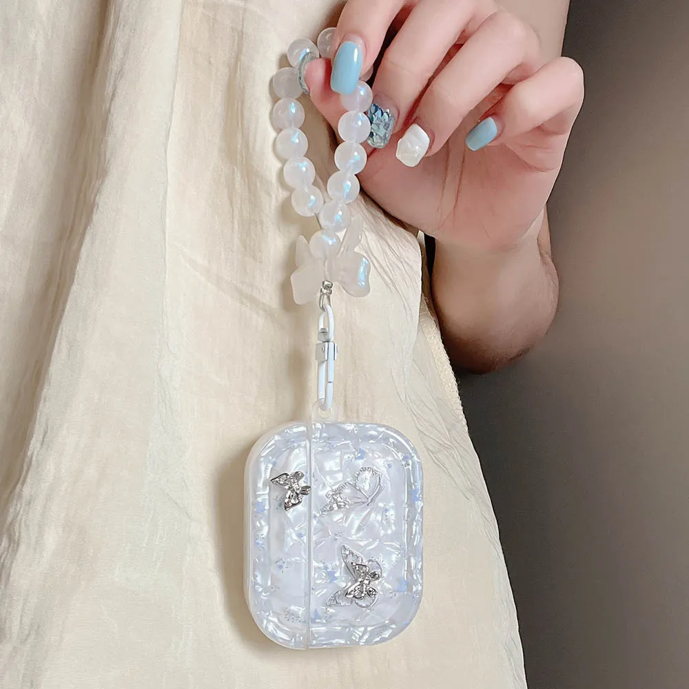Case For AirPods 1 2 3 4  Flower Butterfly Shell Earphone funda For AirPods Pro 2 Soft Protective Cases with Bracelet Keychain
