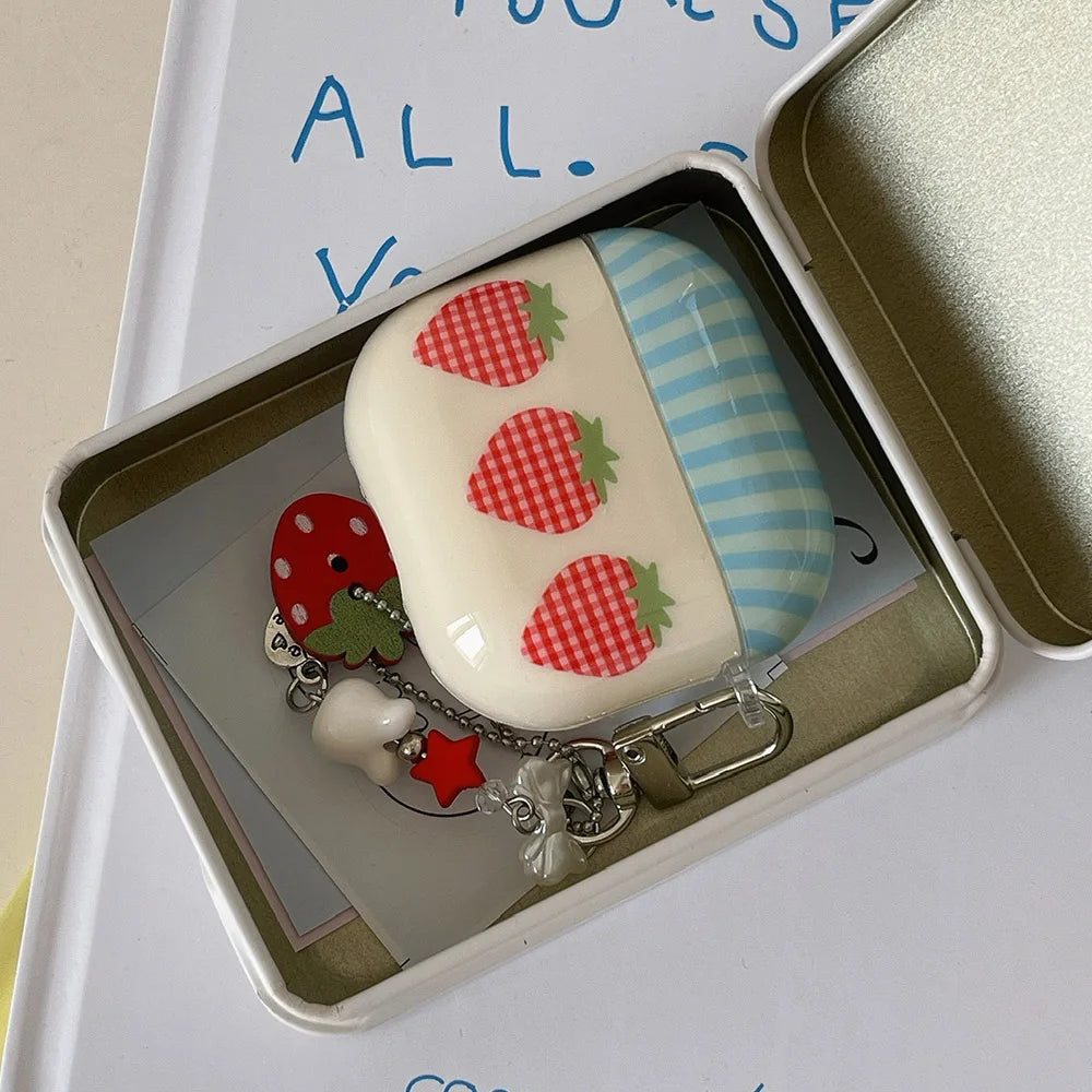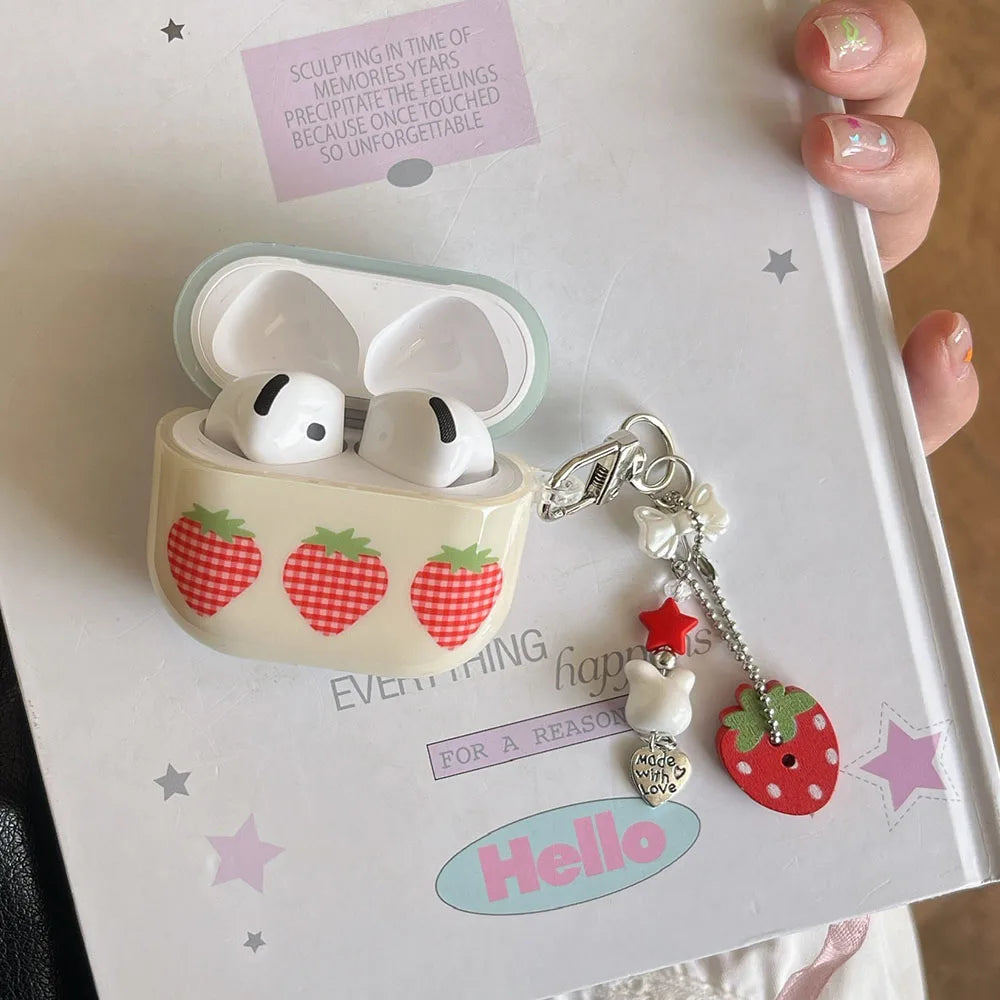 Case for Apple AirPods Pro 2 Protection Cover Lovely Fruit Strawberry Pendant Headphone Cases for AirPods 4 3 2 1 Pro 3nd Fundas
