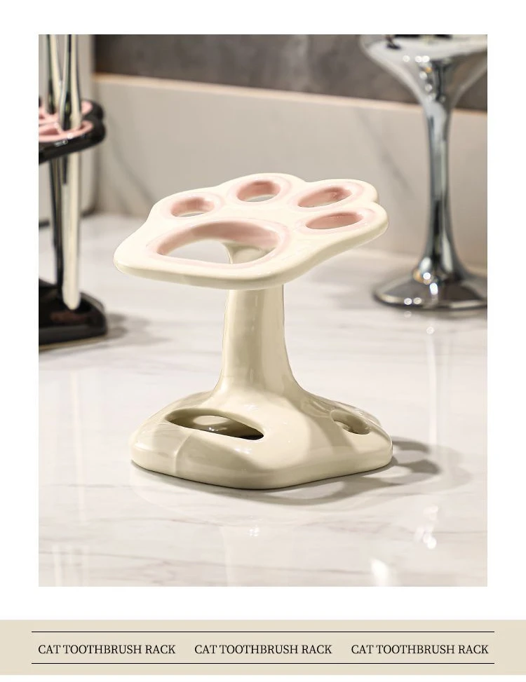 Cat Paw Shape Ceramic Toothbrush Holder Cute No Punching Toothbrush Holder Base Makeup Brush Storage Bathroom Accessories Tool