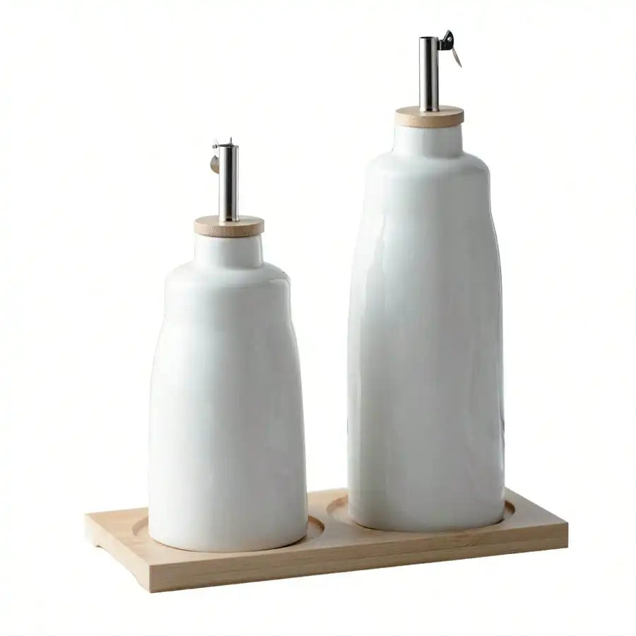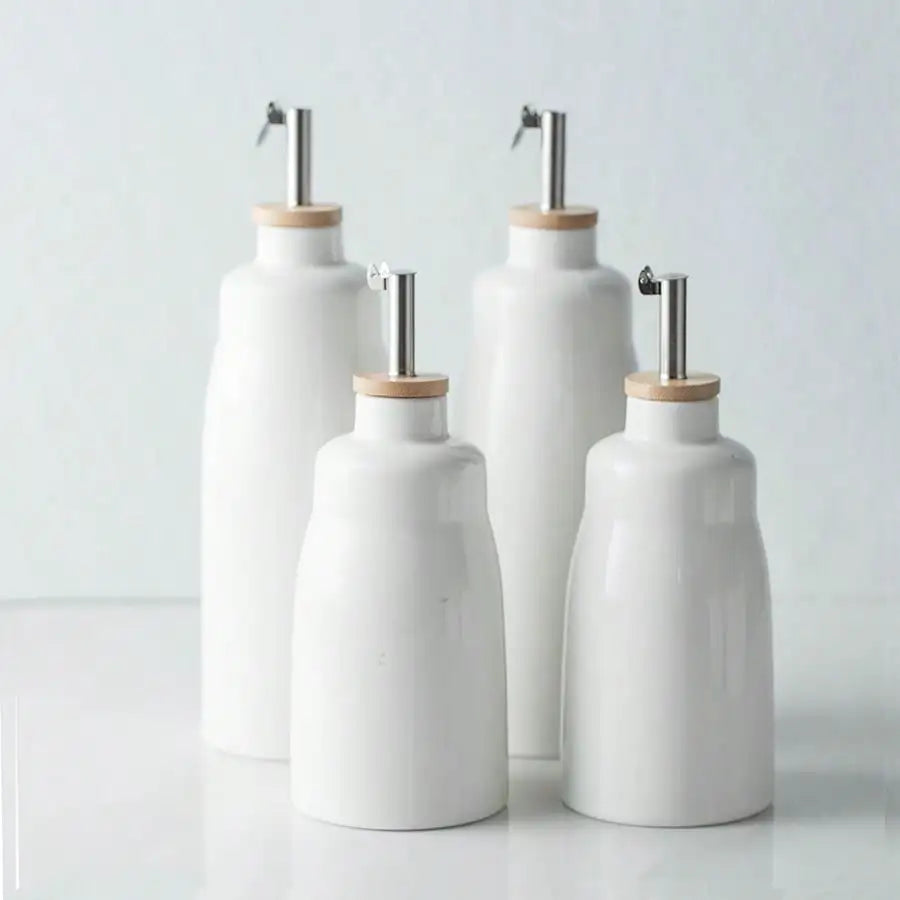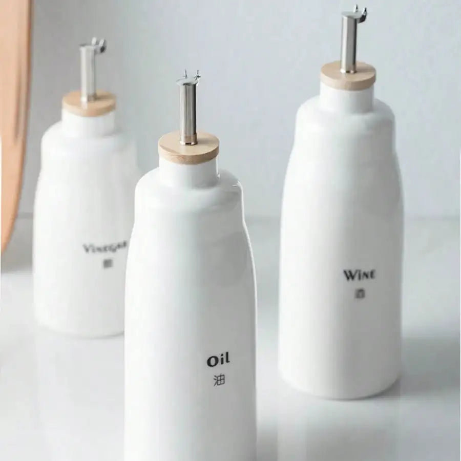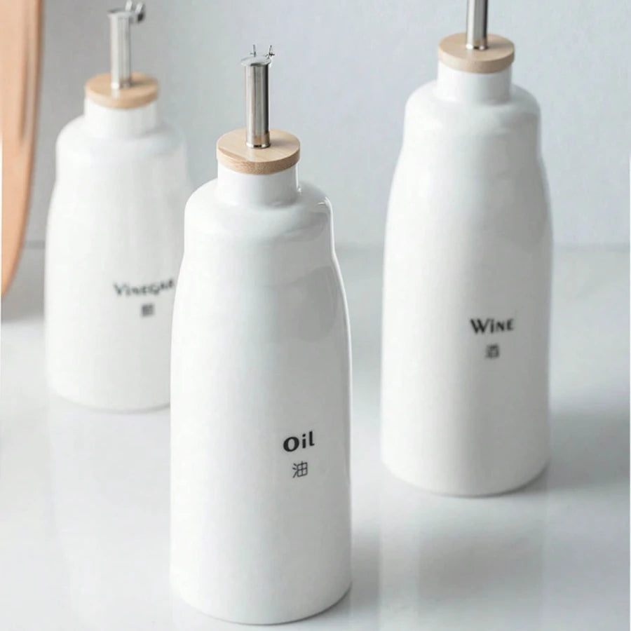 Ceramic Oil Bottle Pot Soy Sauce Vinegar Leakproof Bottle Condiment Jar Creative Metal spout spice bottle condiment dispenser