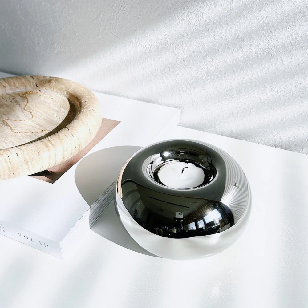 Ceramics Candle Holder Circular Silvery Candlestick Home Desktop Modern Simplicity Decor DIY Office Supplies Aromatherapy Gifts