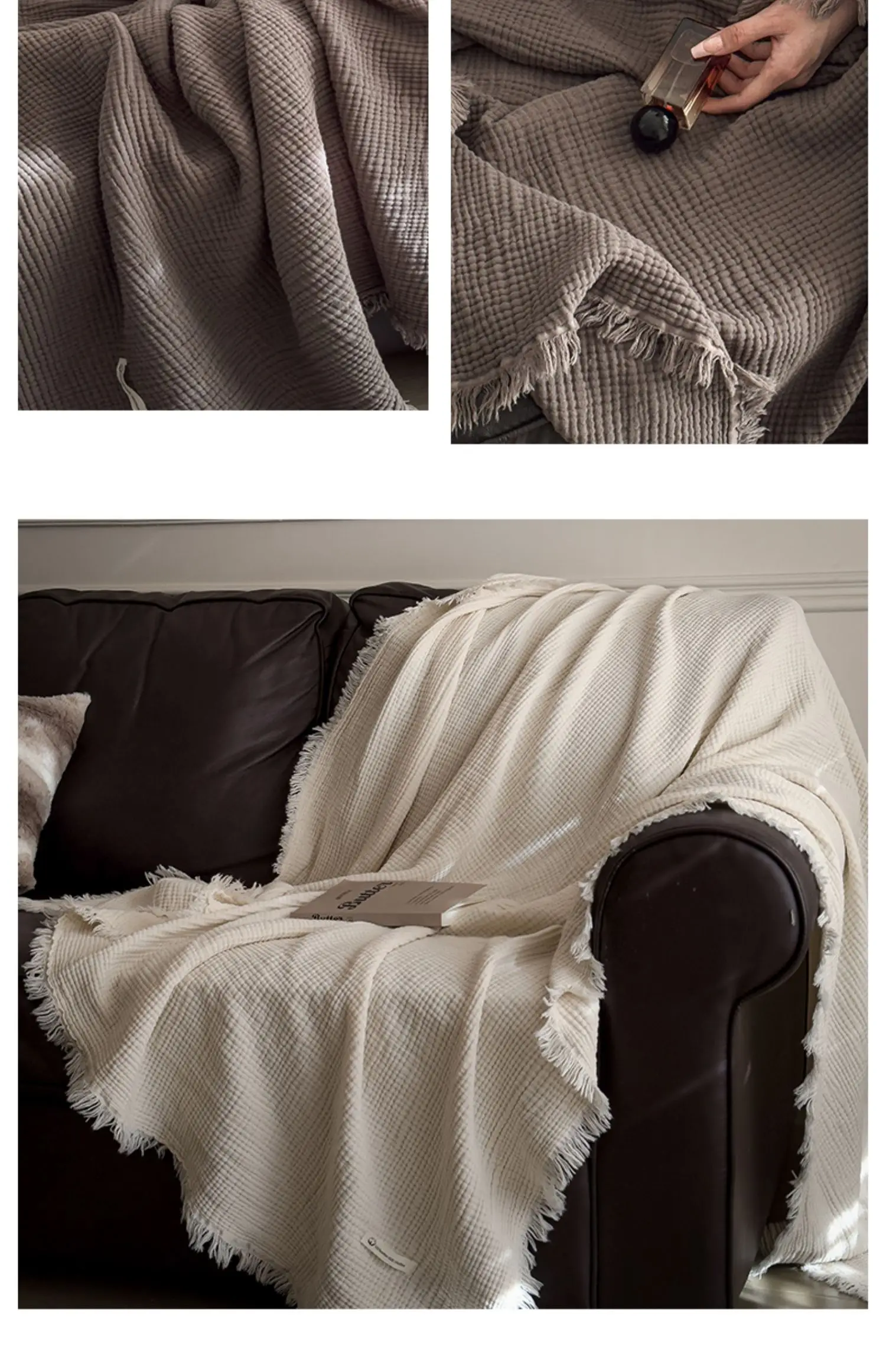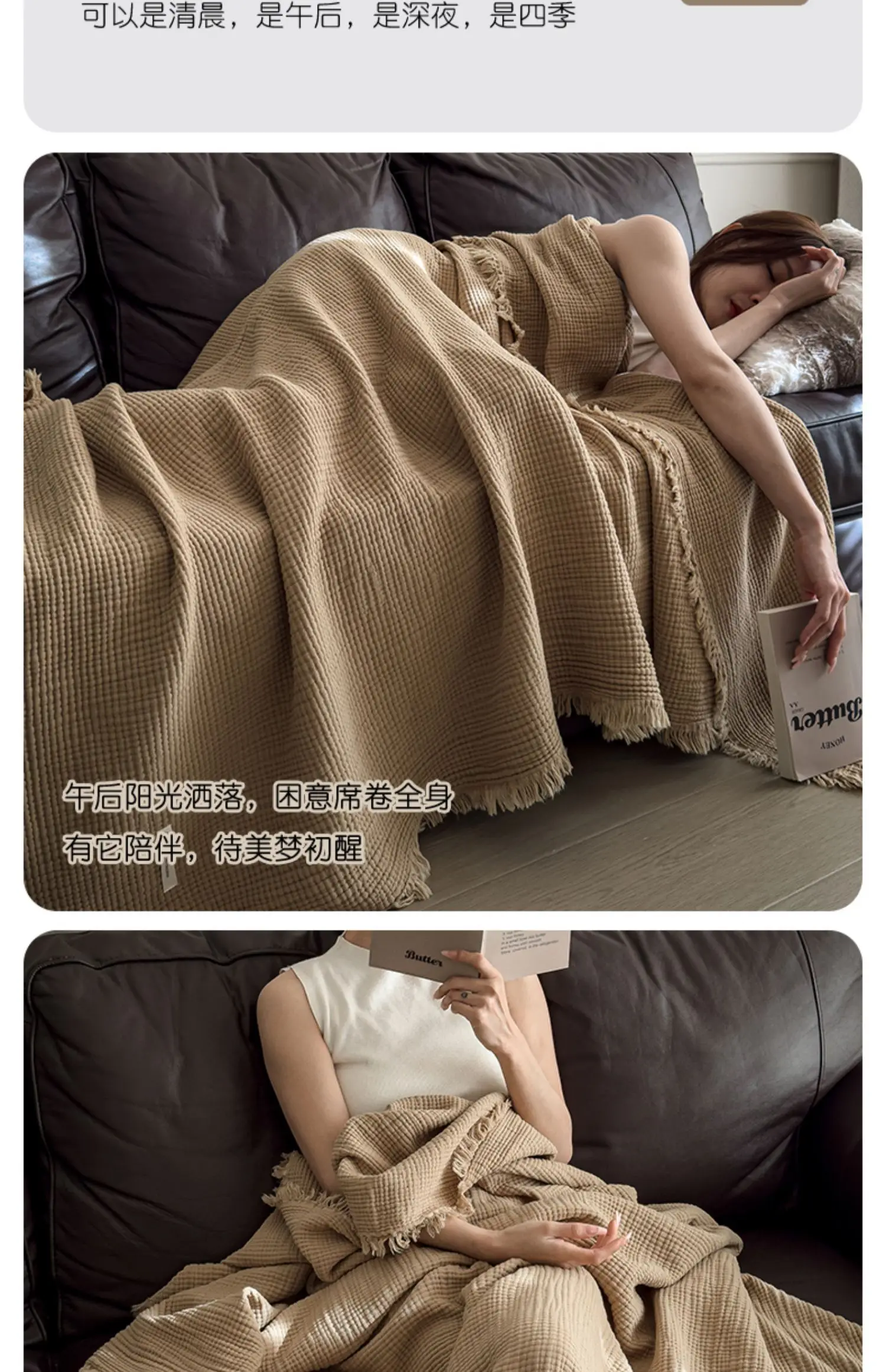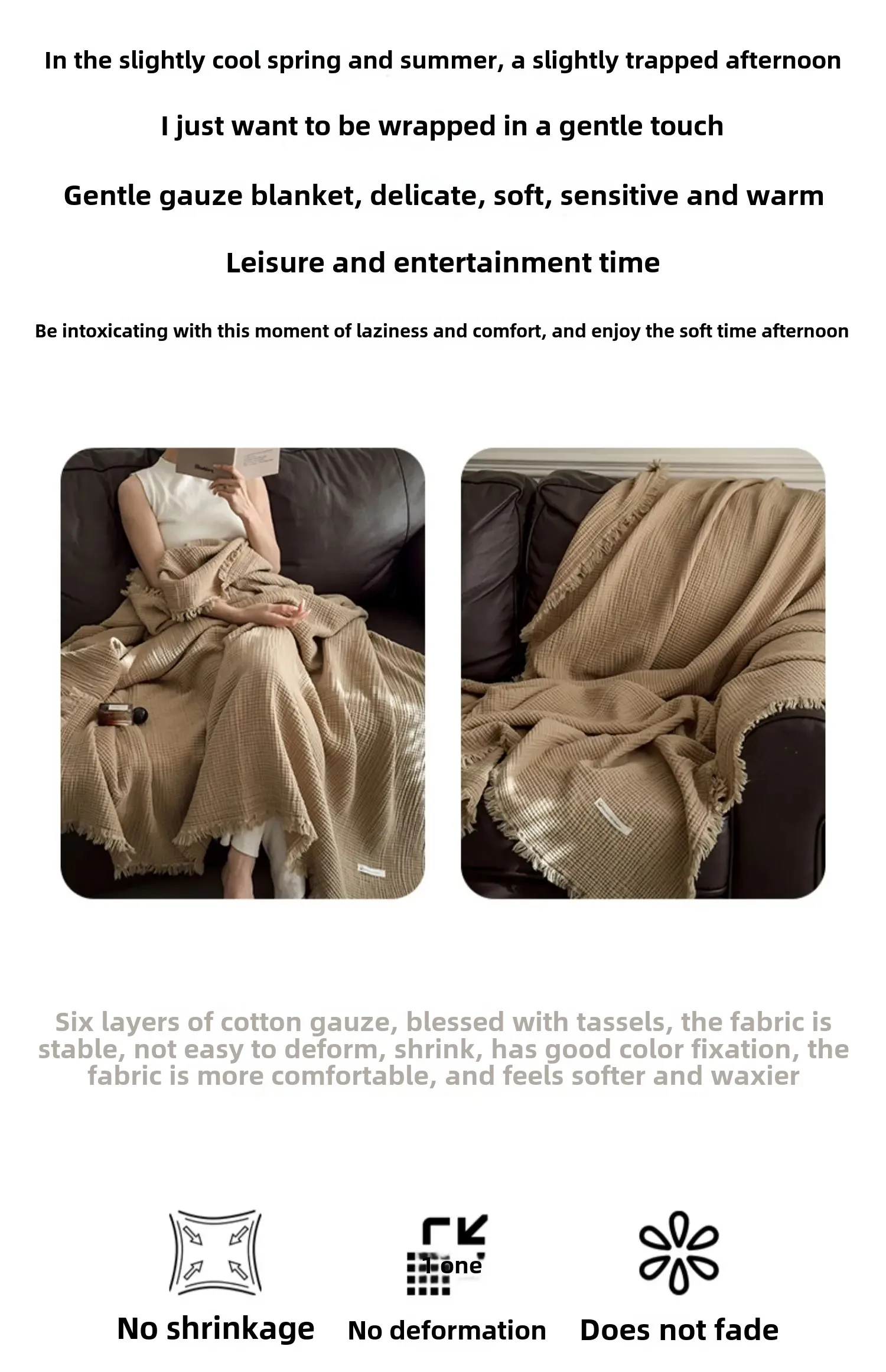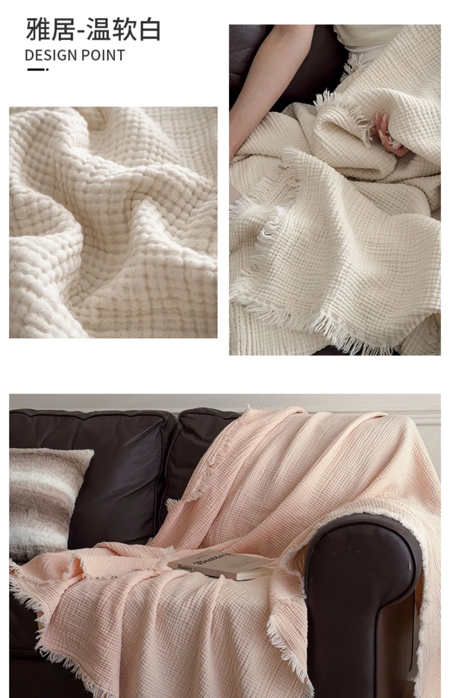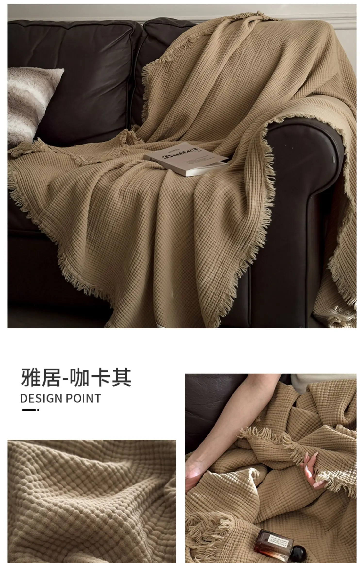 Class A knitted fringed blanket pure cotton six-layer gauze 100 cotton shawl blanket retro sofa nap blanket