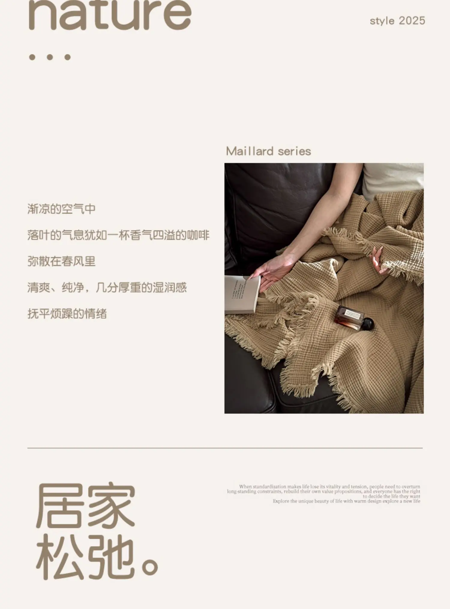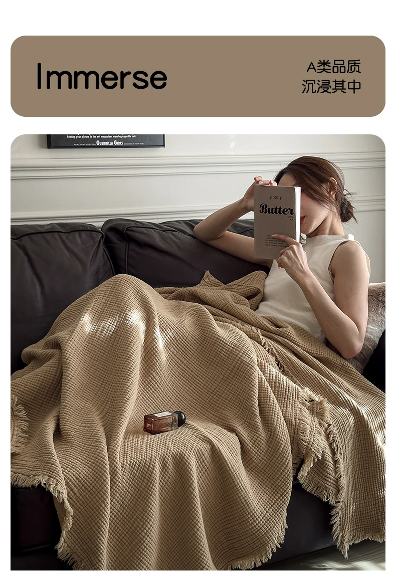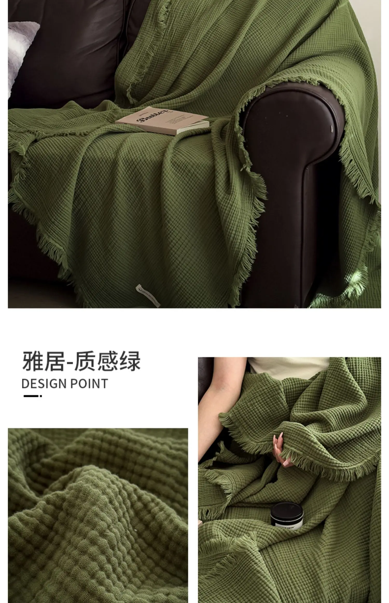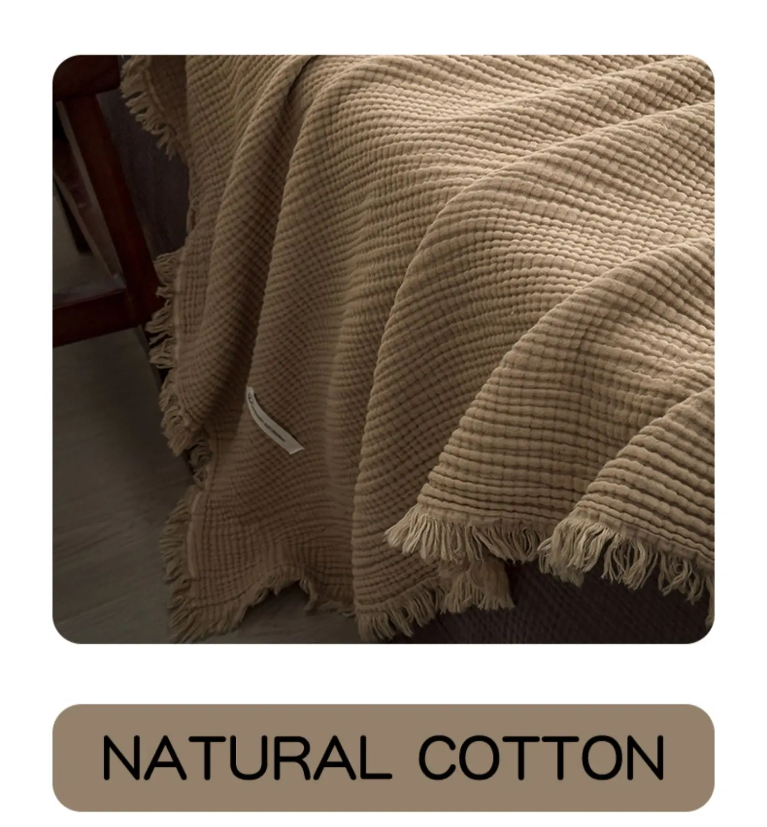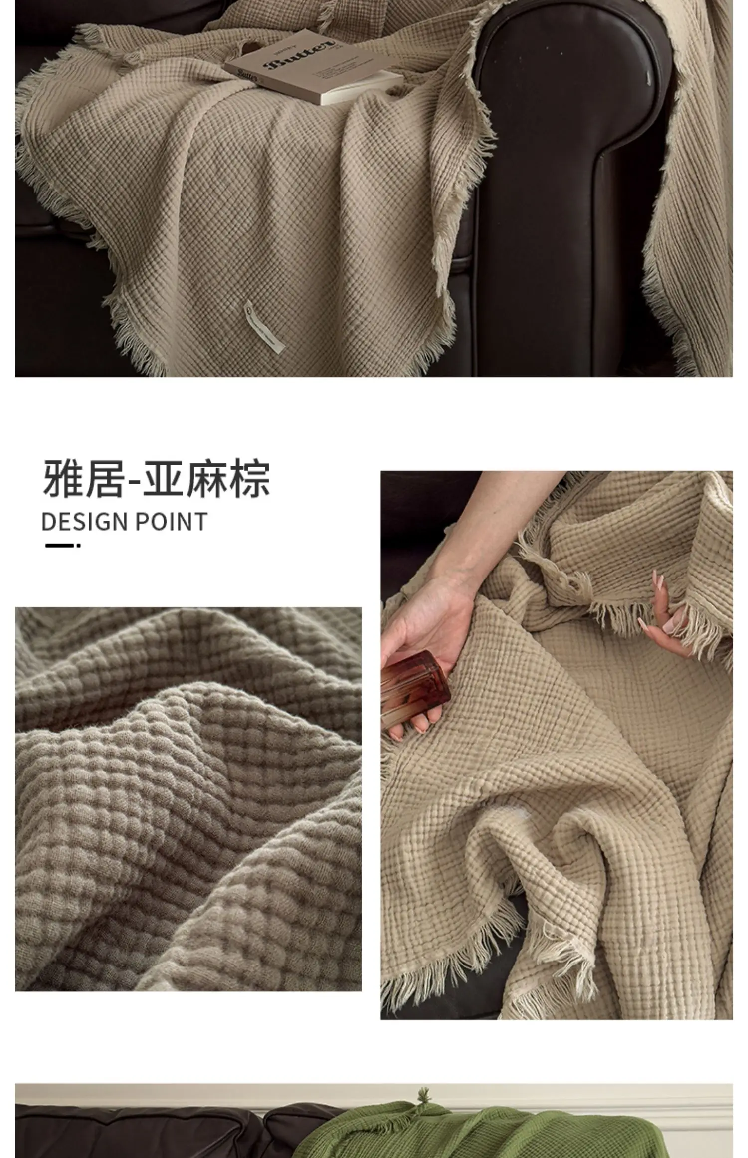 Class A knitted fringed blanket pure cotton six-layer gauze 100 cotton shawl blanket retro sofa nap blanket