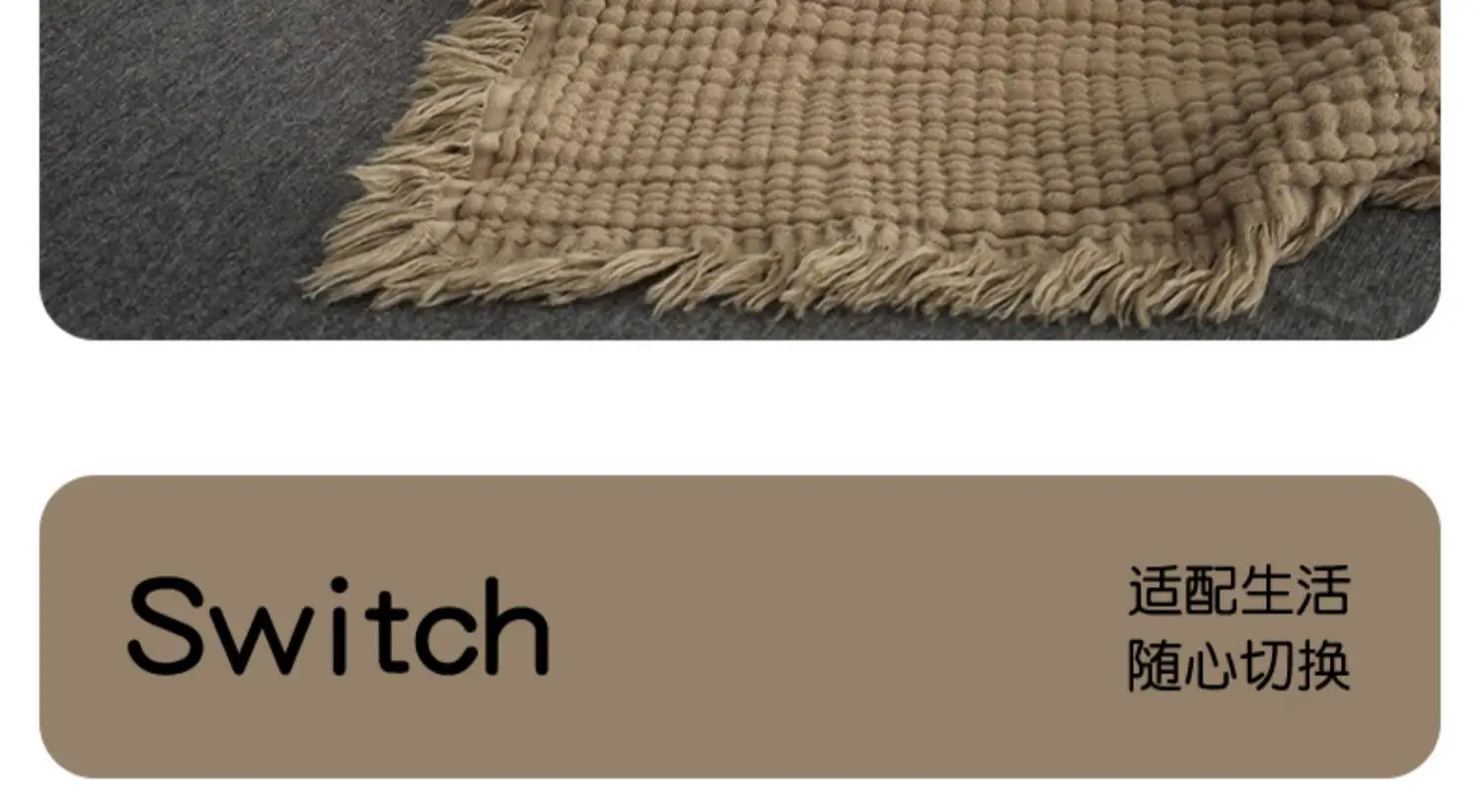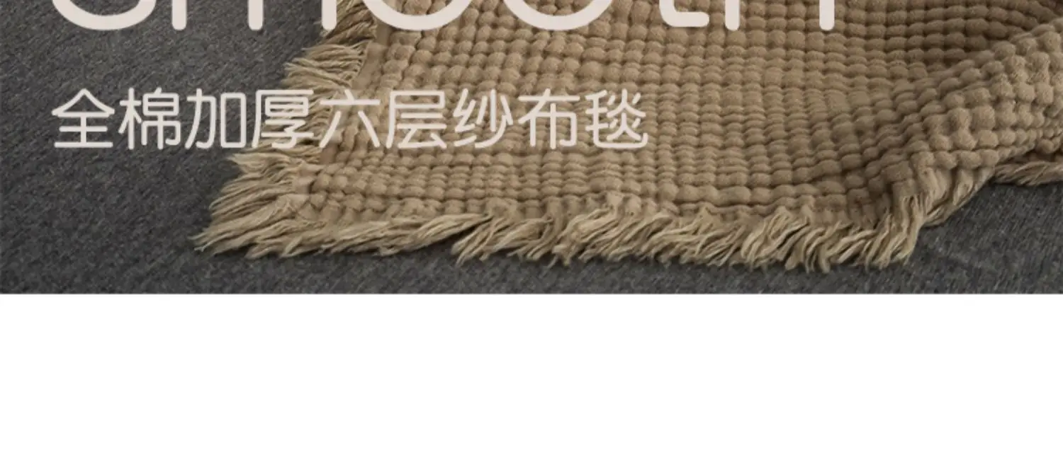 Six layers of cotton gauze, blessed with tassels, the fabric is stable, not easy to deform, shrink, has good color fixation, the fabric is more comfortable, and feels softer and waxier