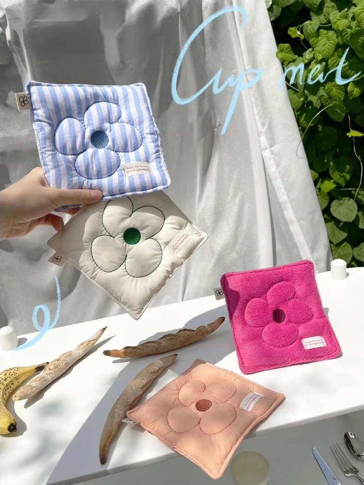 Coaster Original Flower Solid Color Handmade Insulated Coaster Square Dining Plate Mat Table Mat