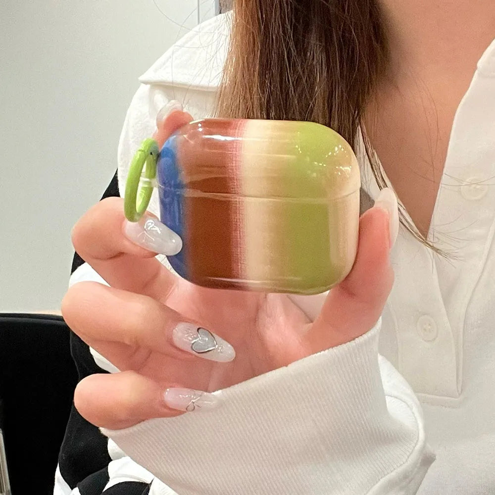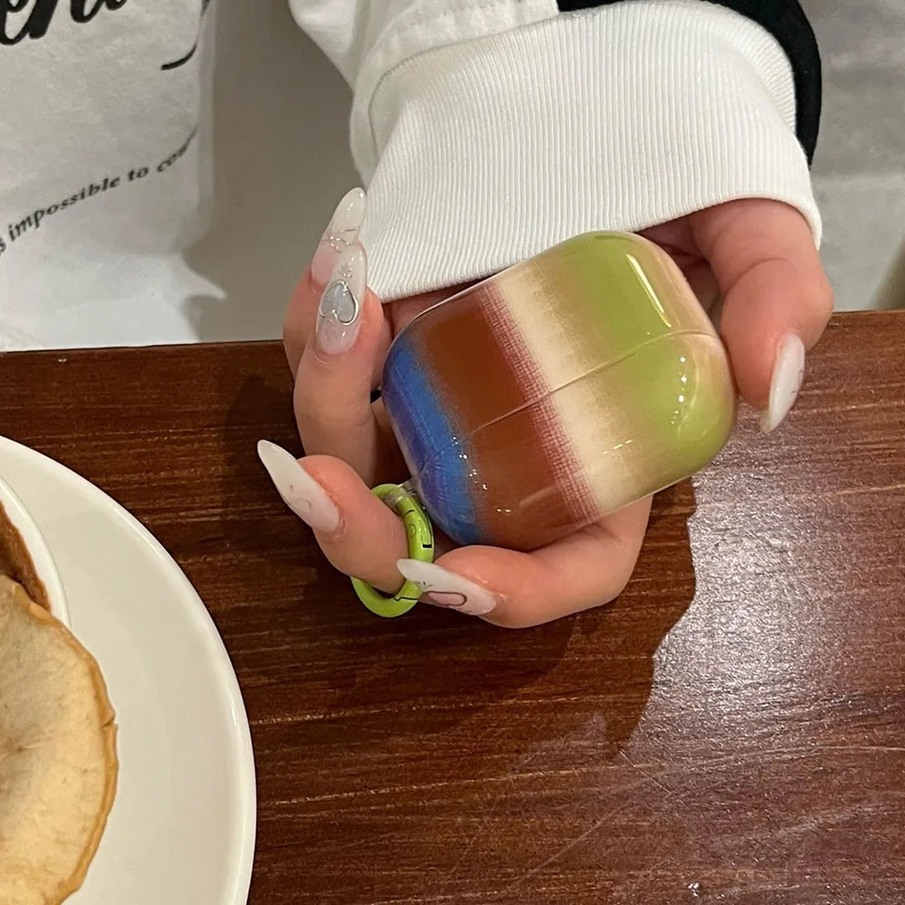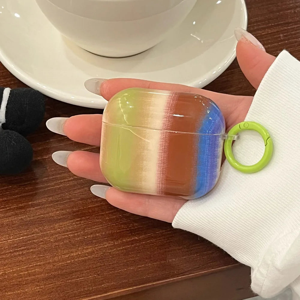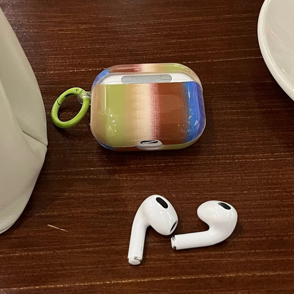 Colorful stripe shell headset protection cover for apple airpods 3 2 1 4 pro 2nd wireless bluetooth earphone charging box cover
