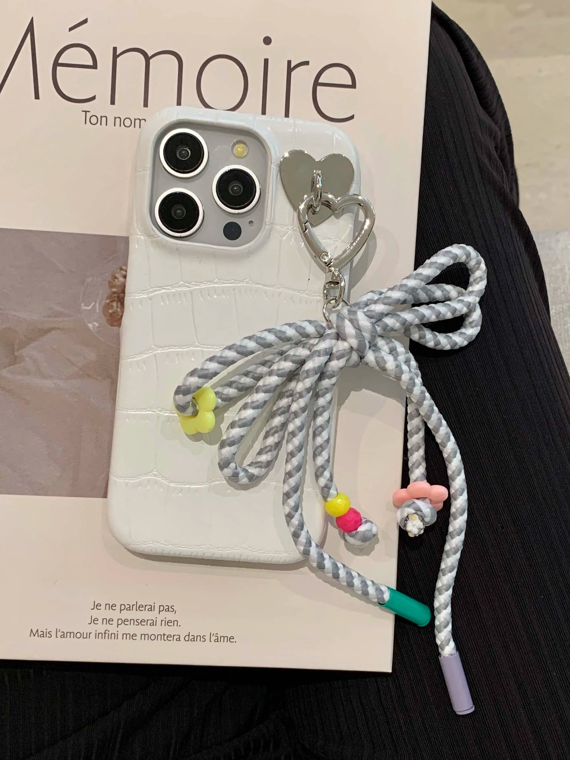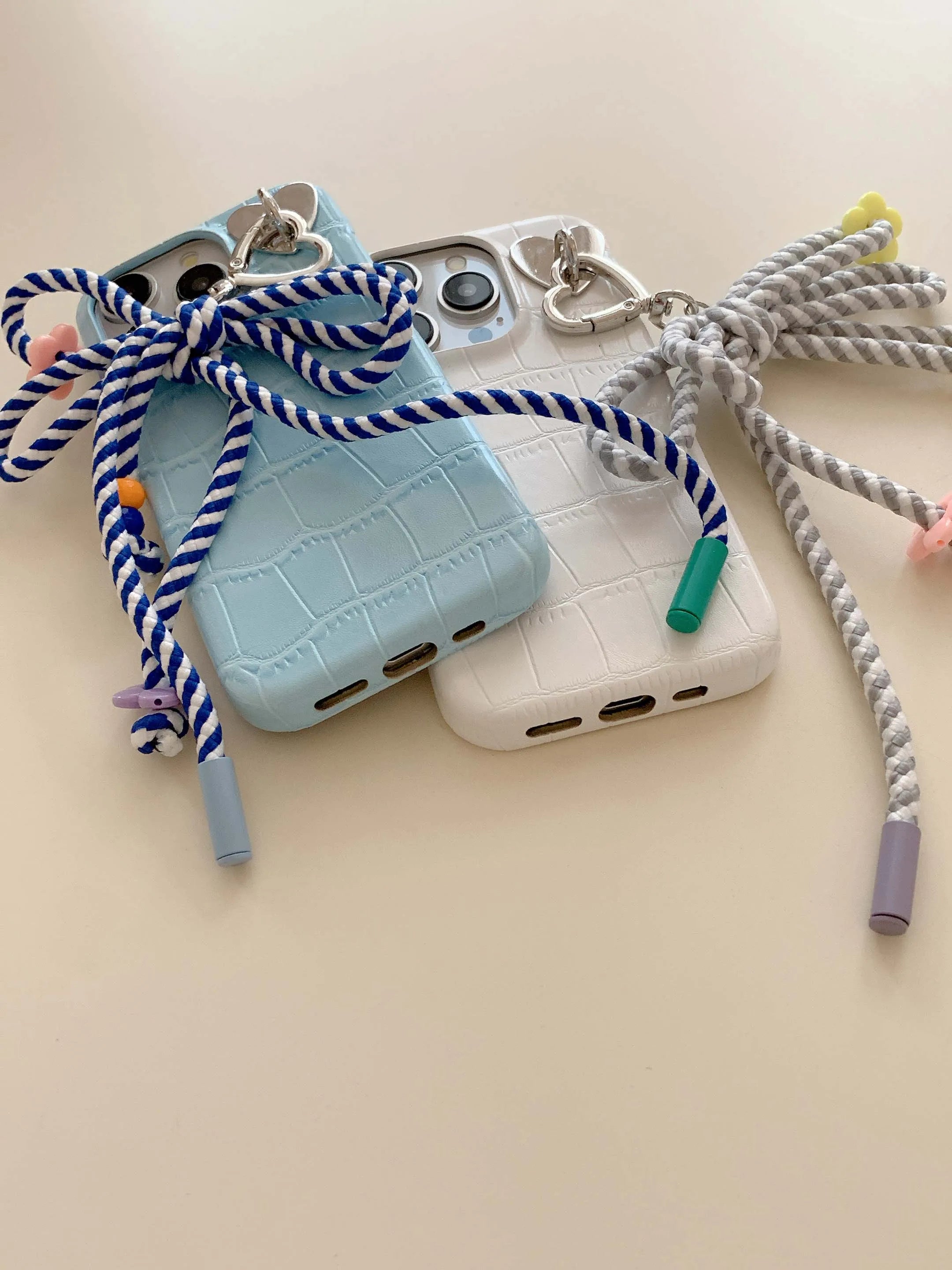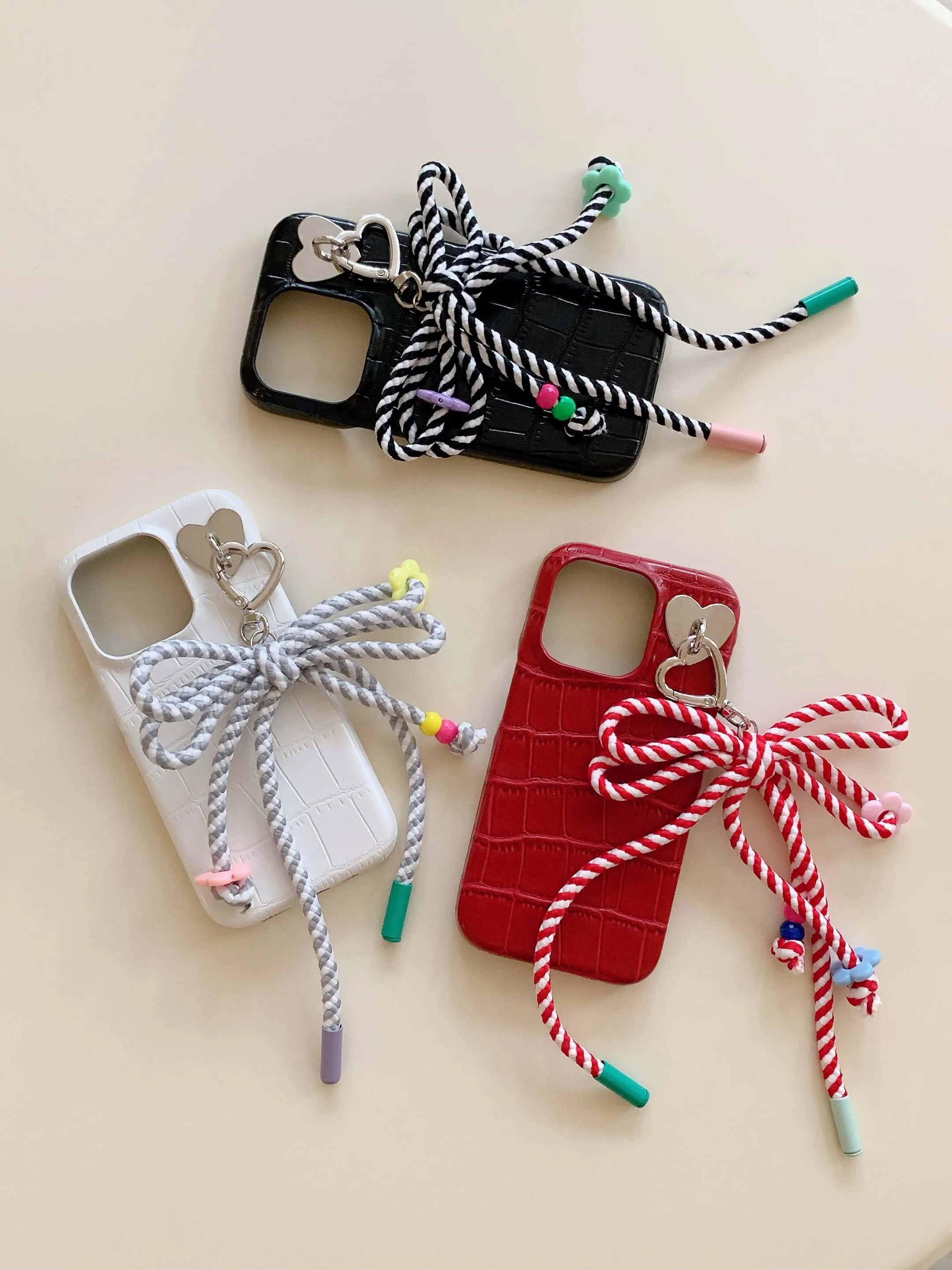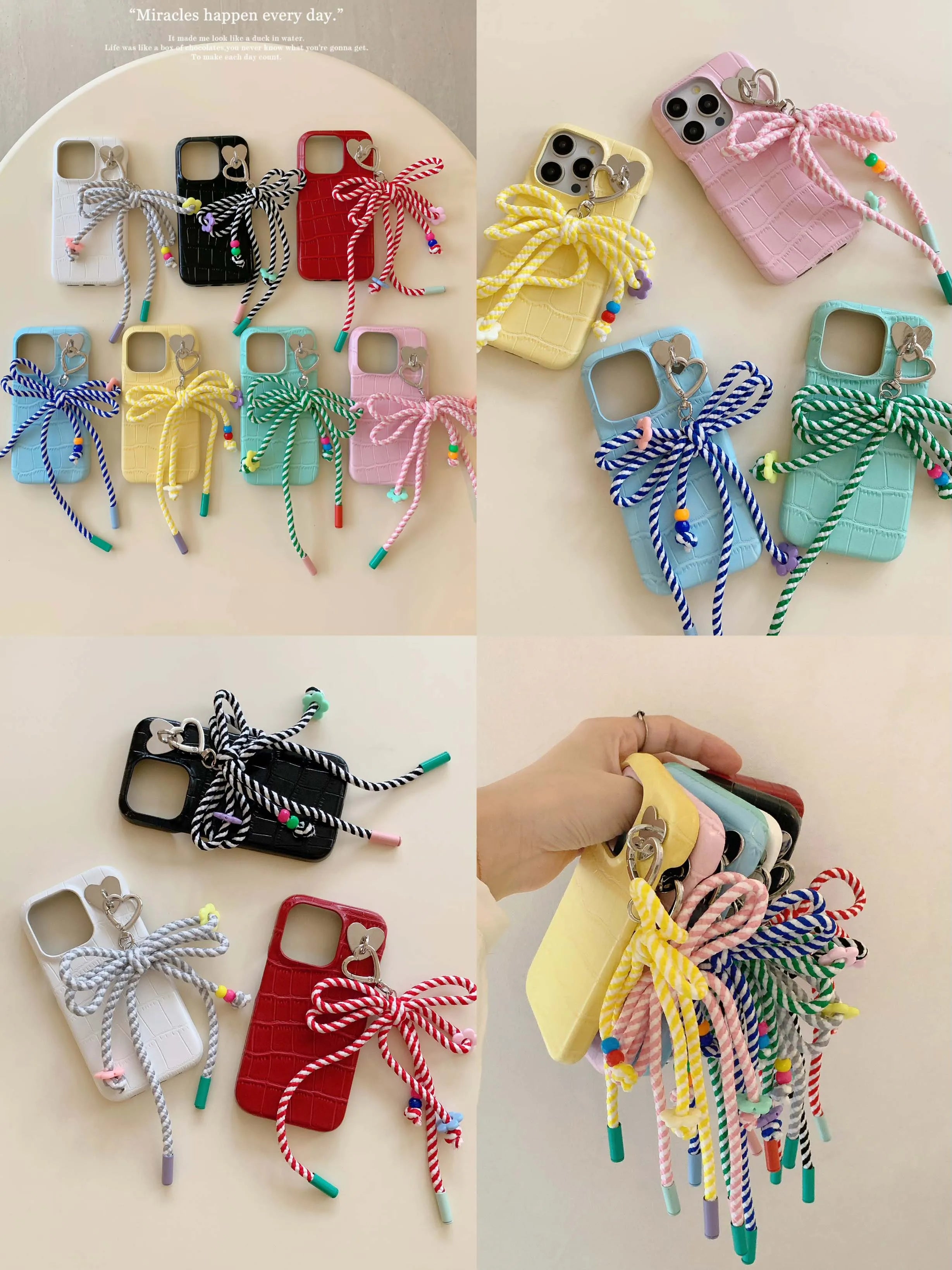 Colorful summer leather fundas for iphone 15 pro max 13pro 14pro 15promax 12 14 13 ins bowknot rope pendant simple phone case