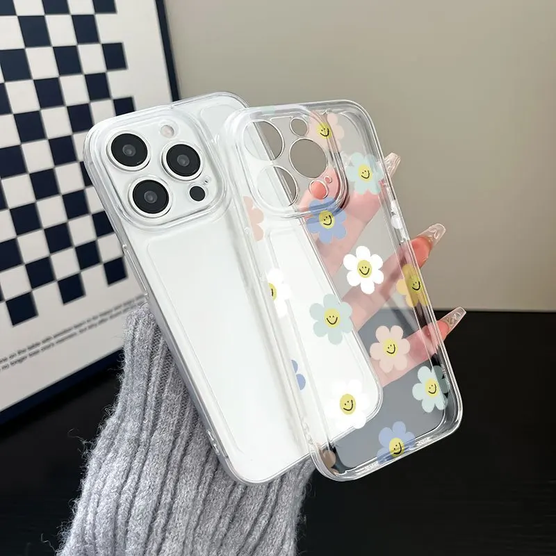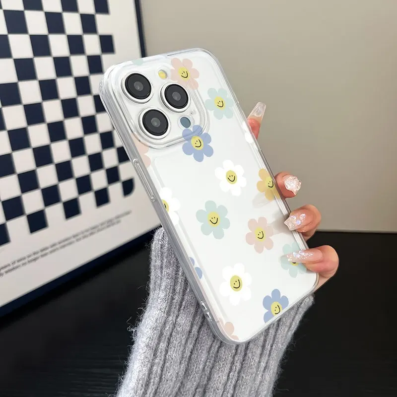 Colourful Flowers Clear Phone Case For iPhone 16 15 14 13 12 12 Pro Max Soft Shockproof Bumper Cover
