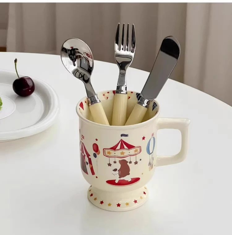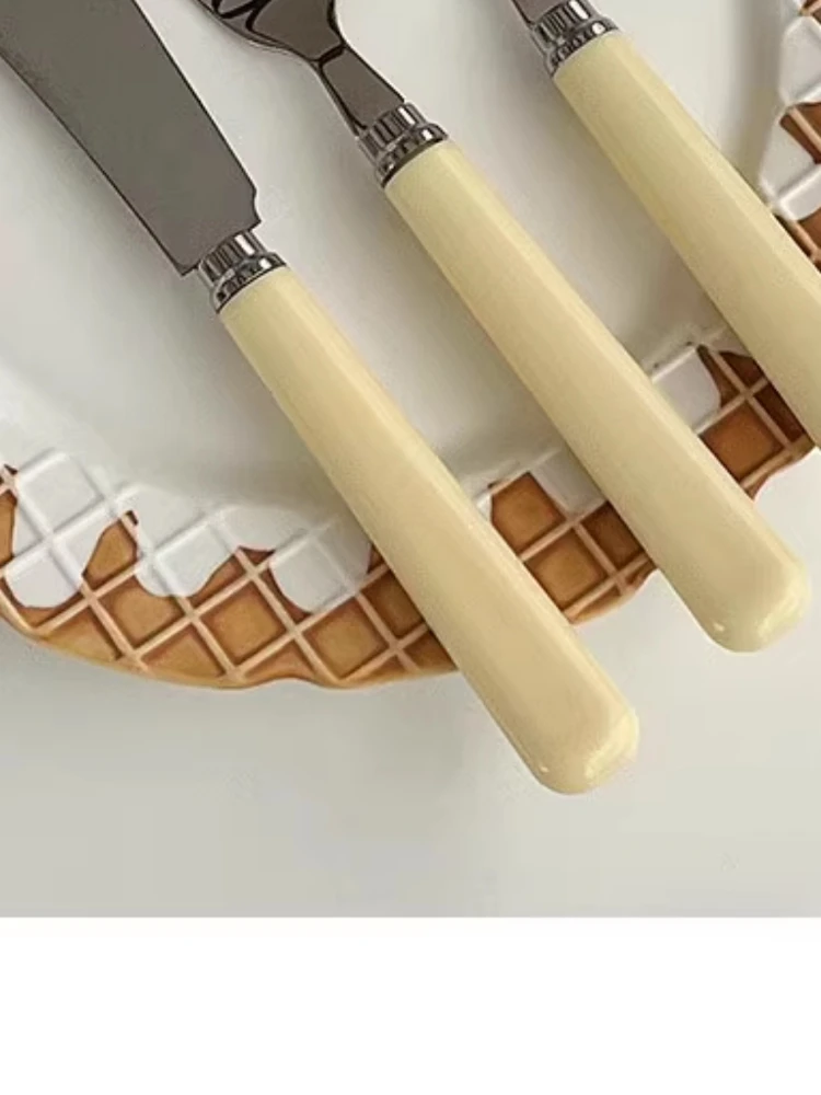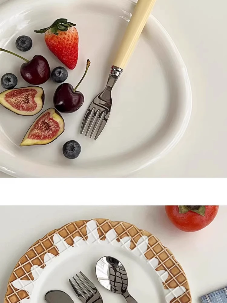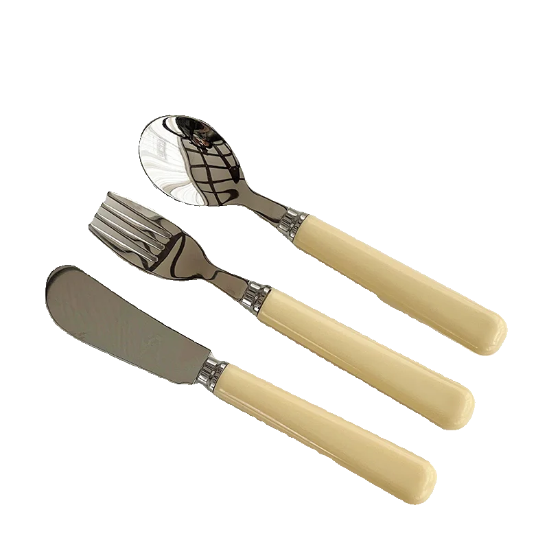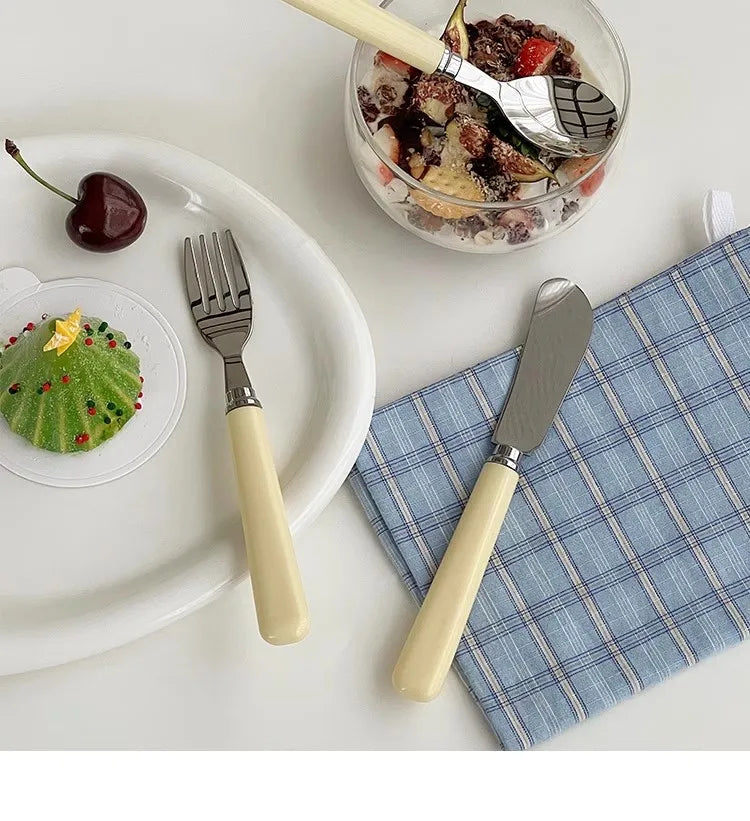 Cream Style Knife Fork Spoon Three Piece Set for Home Use Simple Dessert Spoon Yogurt Spoon Western-style Fork Fruit Fork
