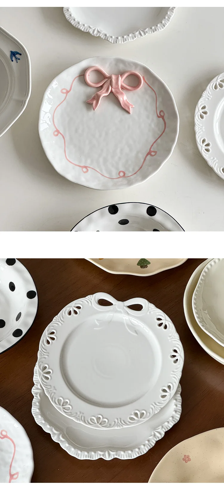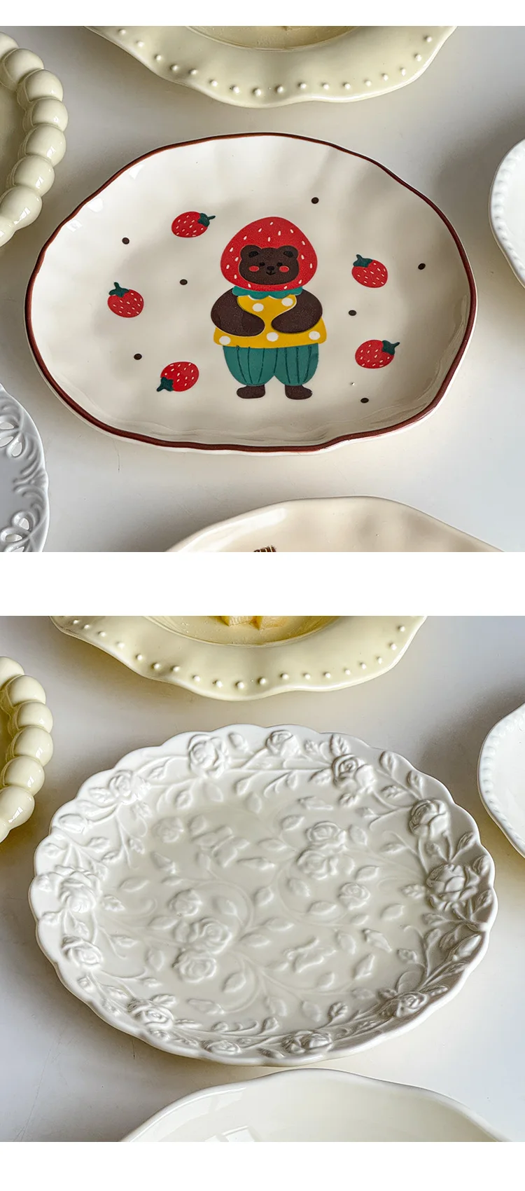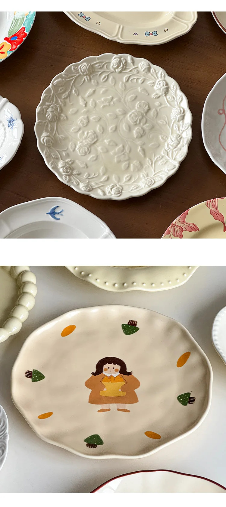 Cream Wind Plate Collection Embossed Lace Dessert Plate Italian Noodle Plate Salad Plate Cute and Beautiful Home Use