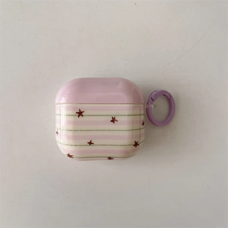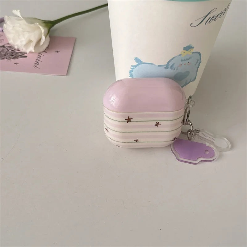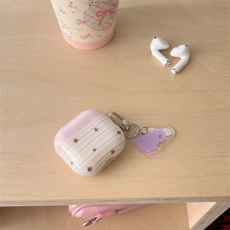 Cute Black Stars Pattern Earphone Case for AirPods 1 2 3 4 Pro Pro2 Purple Striped Headphone Cover With Pendant