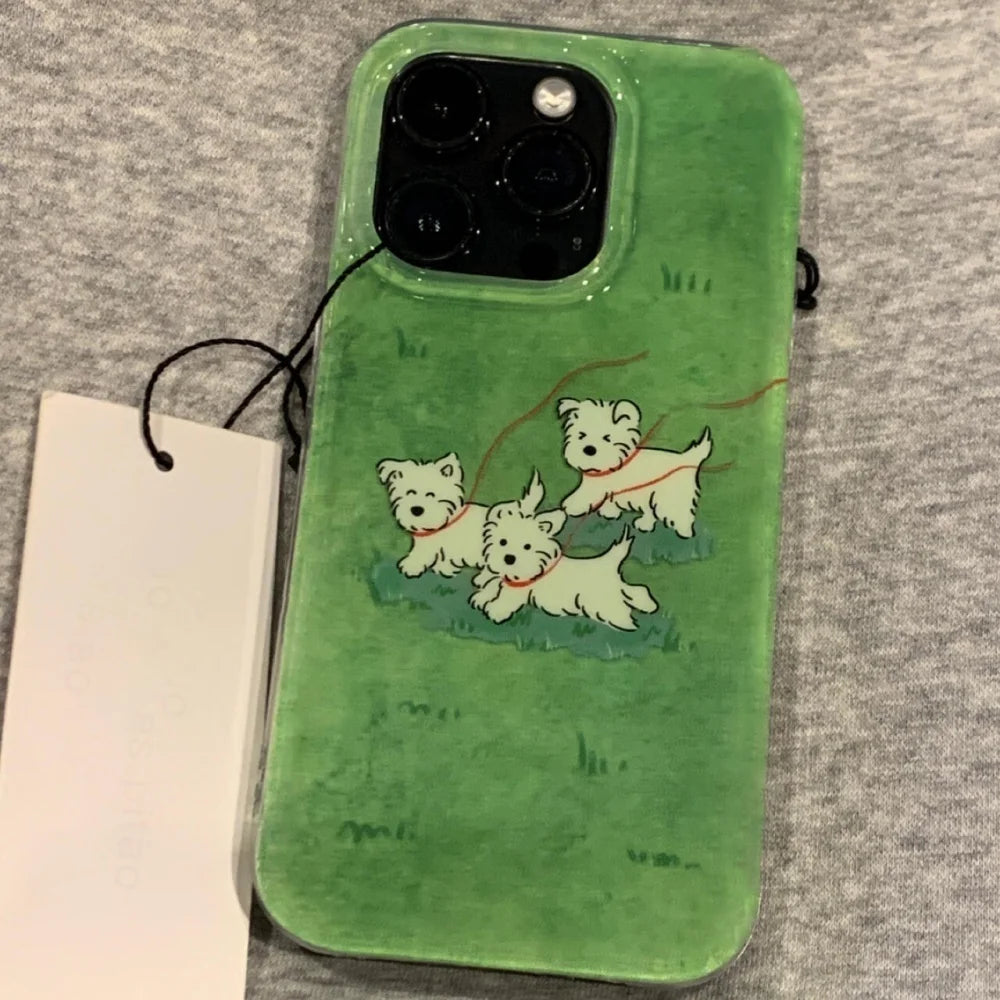 Cute Cartoon Running Grassland Puppy Green Jelly Candy Case For iPhone 16 15 Pro Max 14 Pro 13 12 11 Plus Lovely High-end Cover