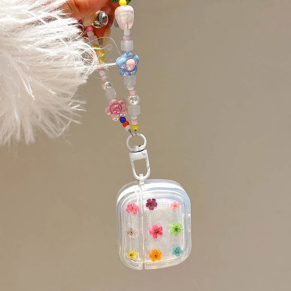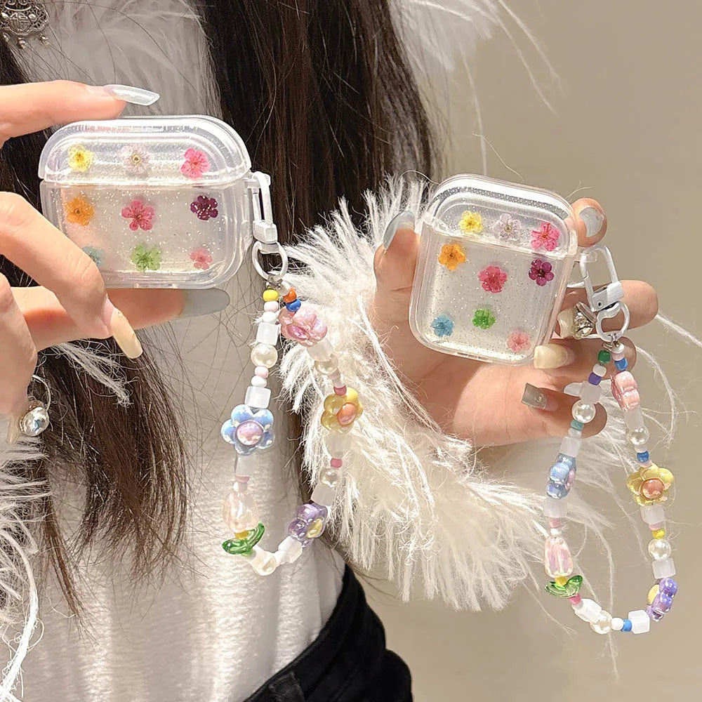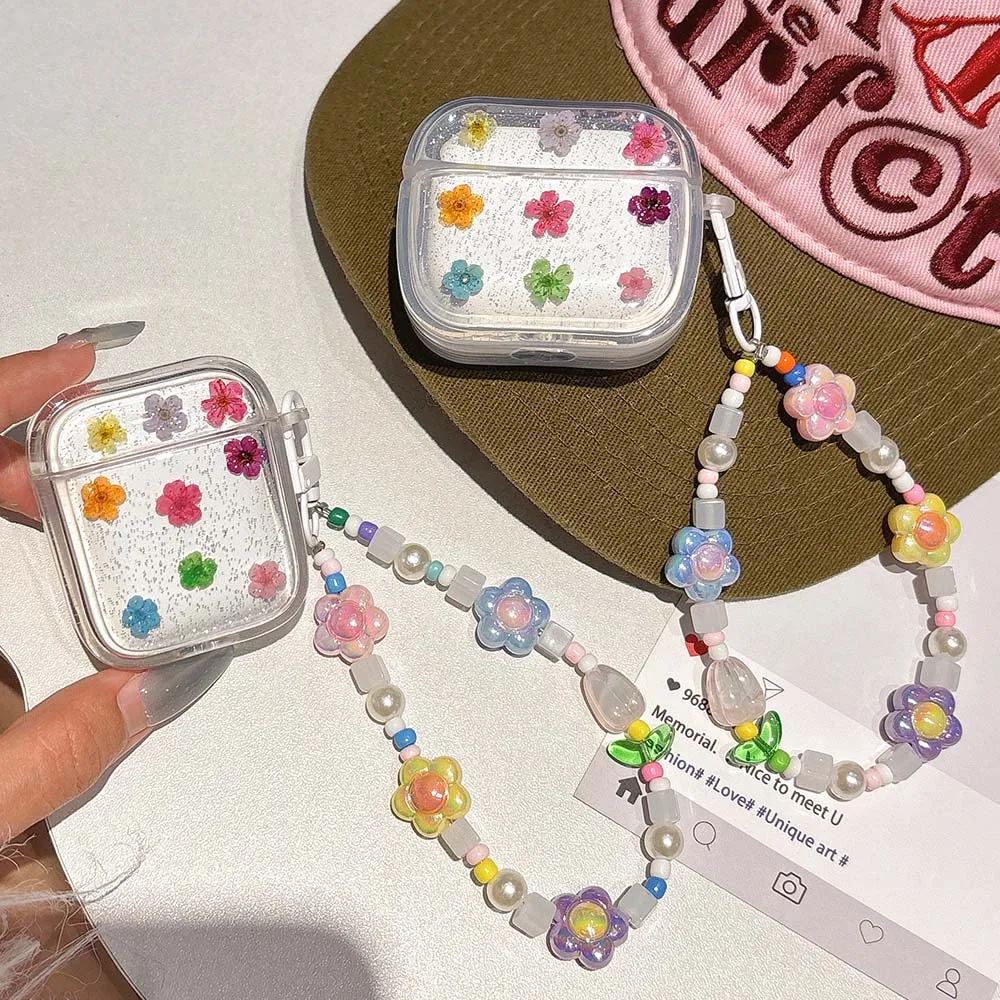 feature: clear real flower pattern Earphone Case For AirPods2 airpods3 airpods4 AirPods 4ANC funda with bracelet