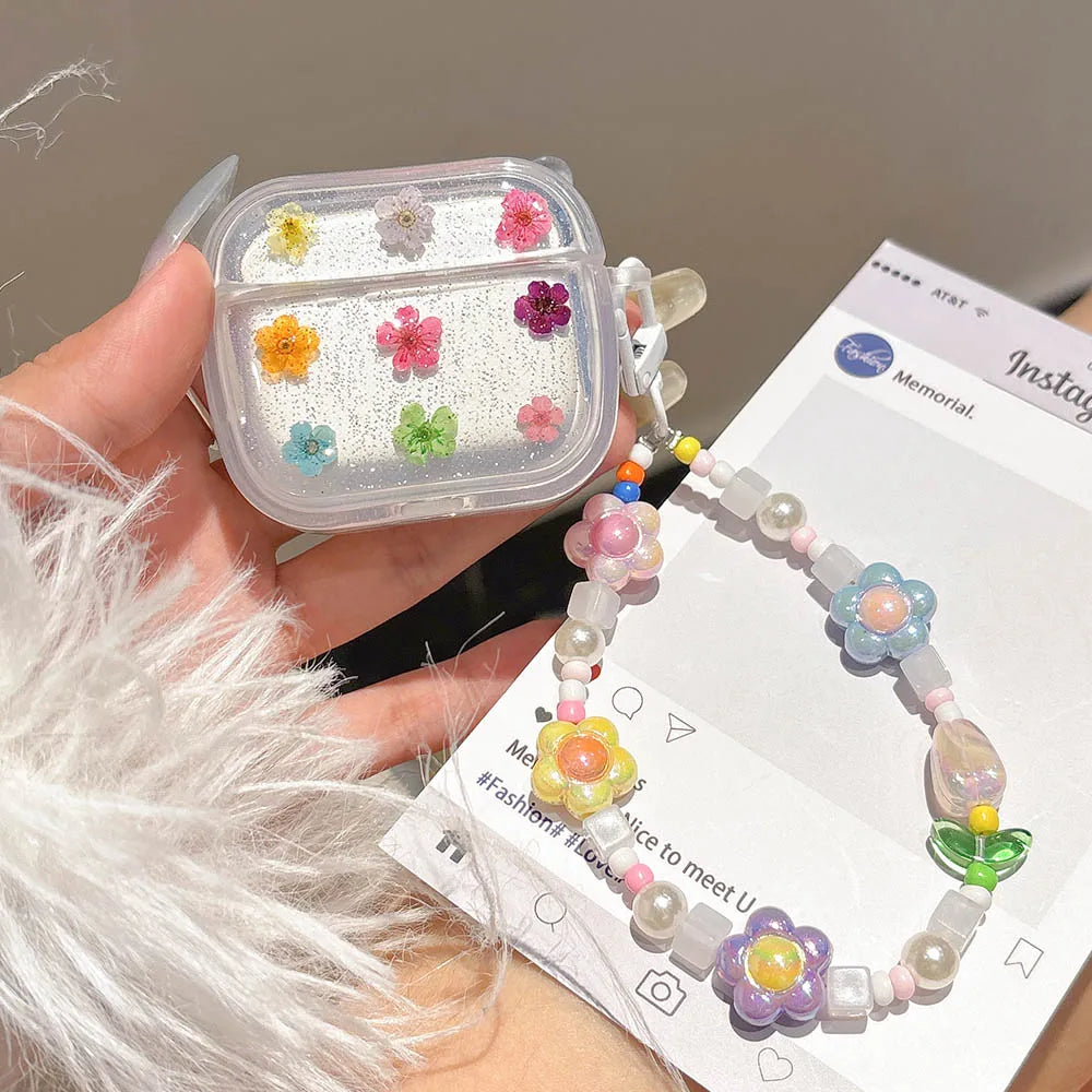 Dried Flower Glitter Bling Case For AirPods 4 3 2 1 Pro Pro2 Soft Transparent Wirelsss Headphones Protective Cover AirPod Shell