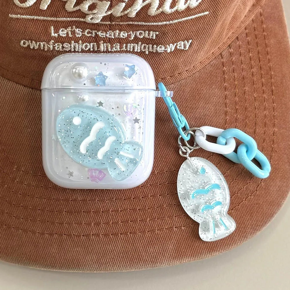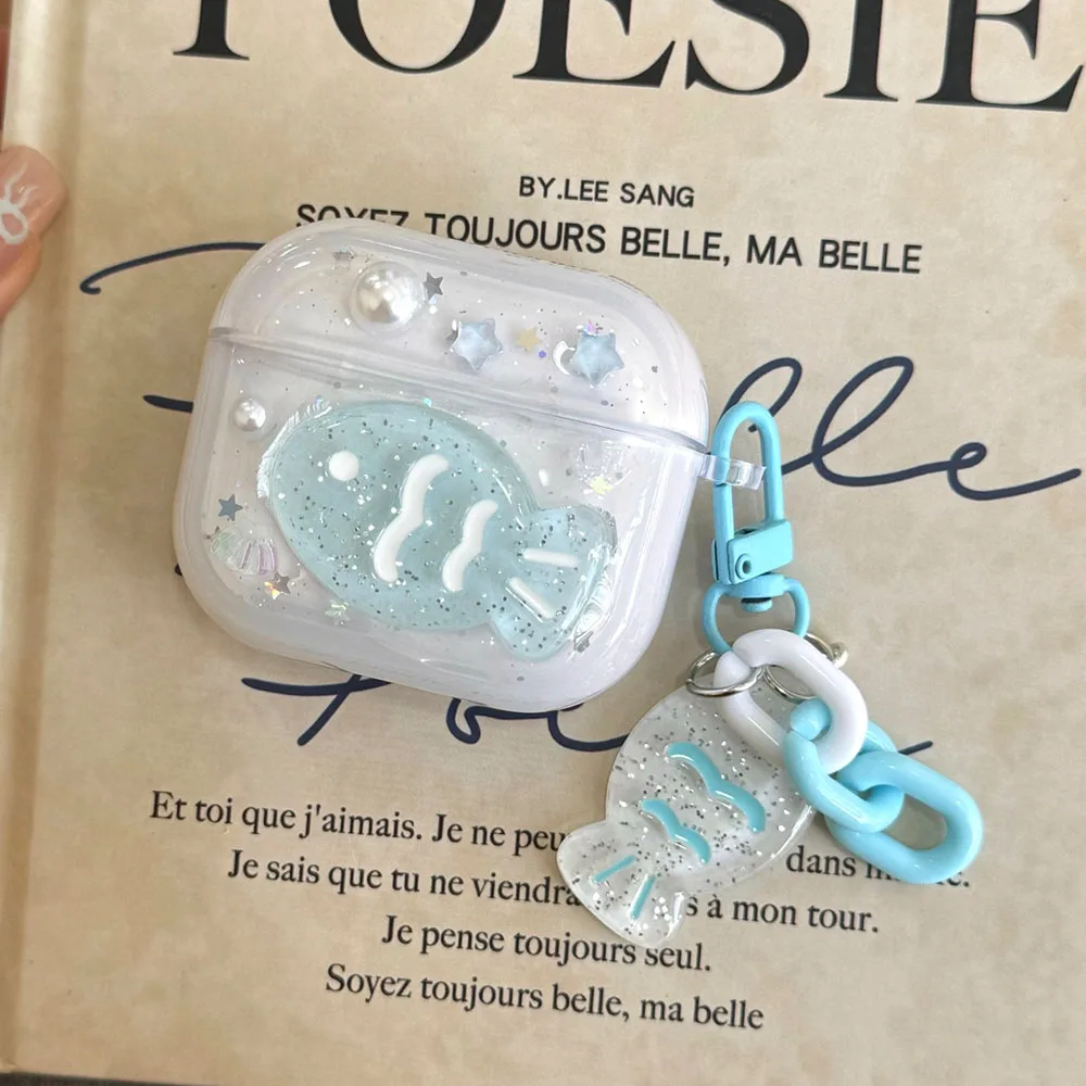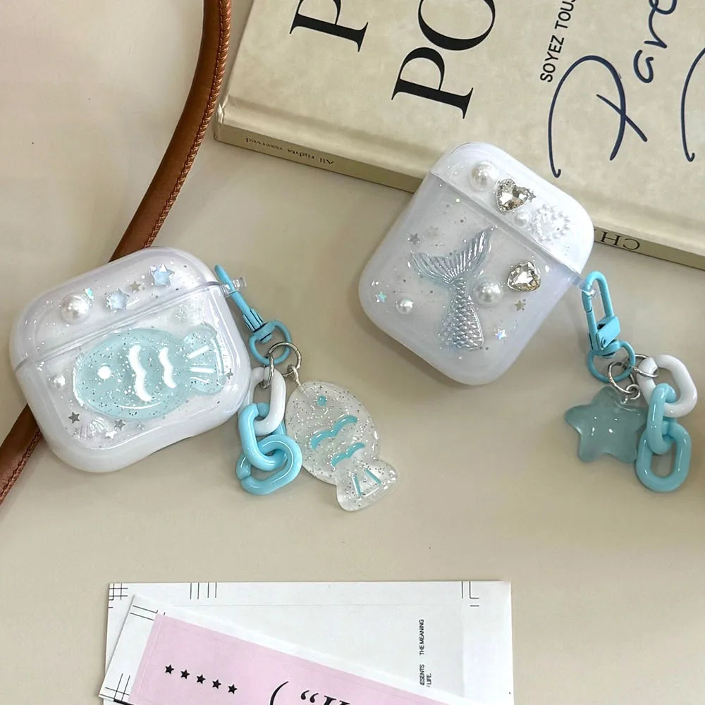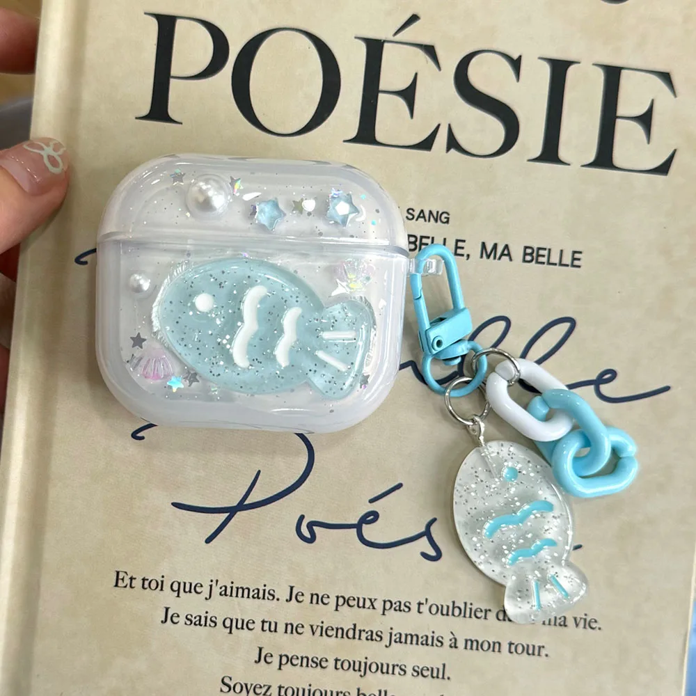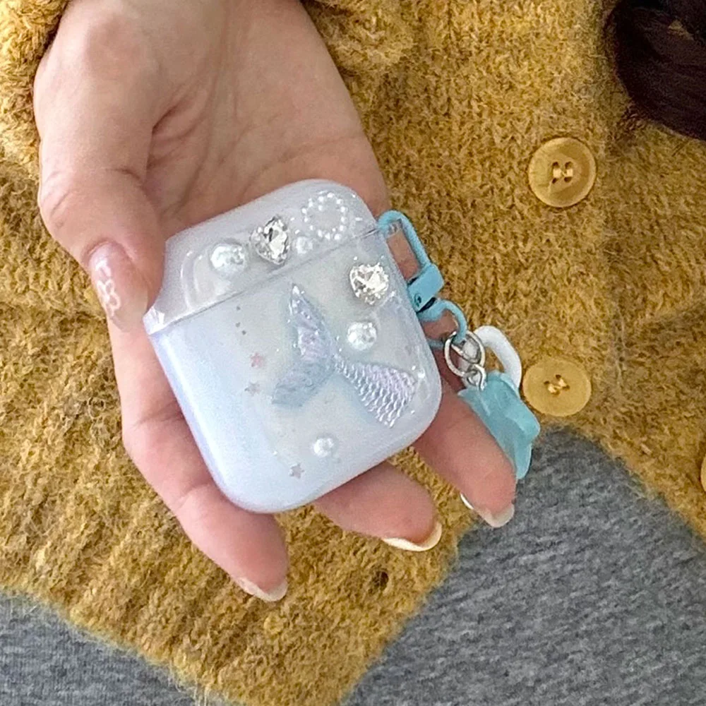 Earphone Case For AirPods 4 Glitter Fish Mermaid Star Pearl Protective Case with Keychain for Airpods 1 2 3 4th Pro Pro2