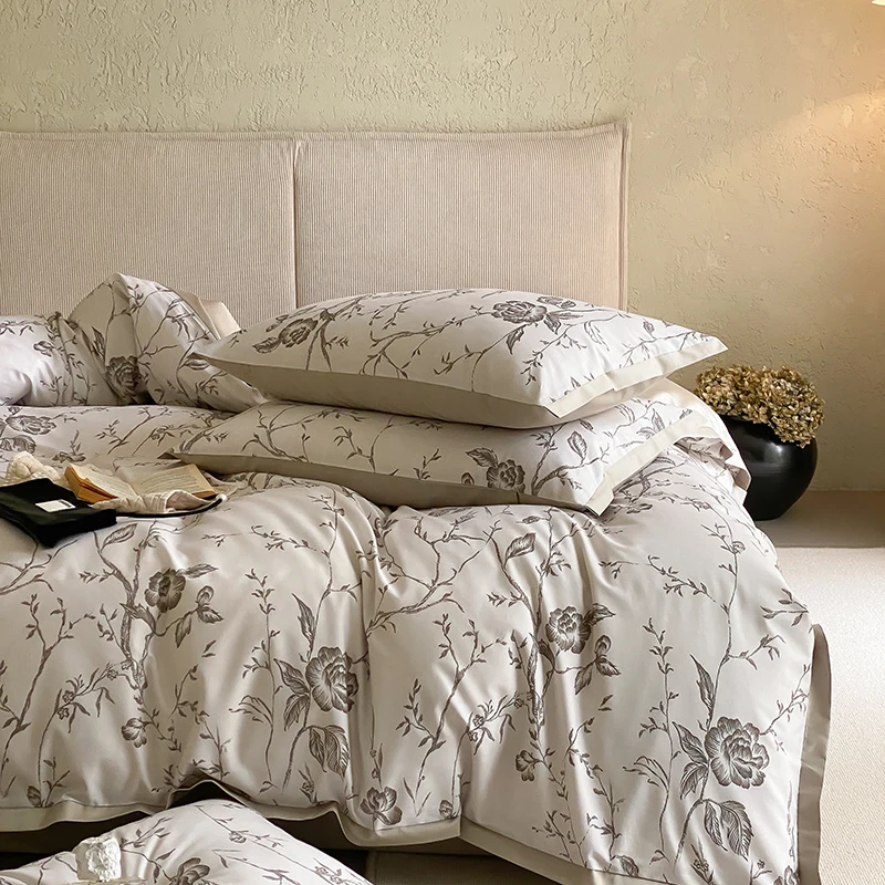 Egyptian Cotton Underwear Bedding Sets Linens Queen King Ru Size Print Sheet Pillowcase Blanket Cover Set