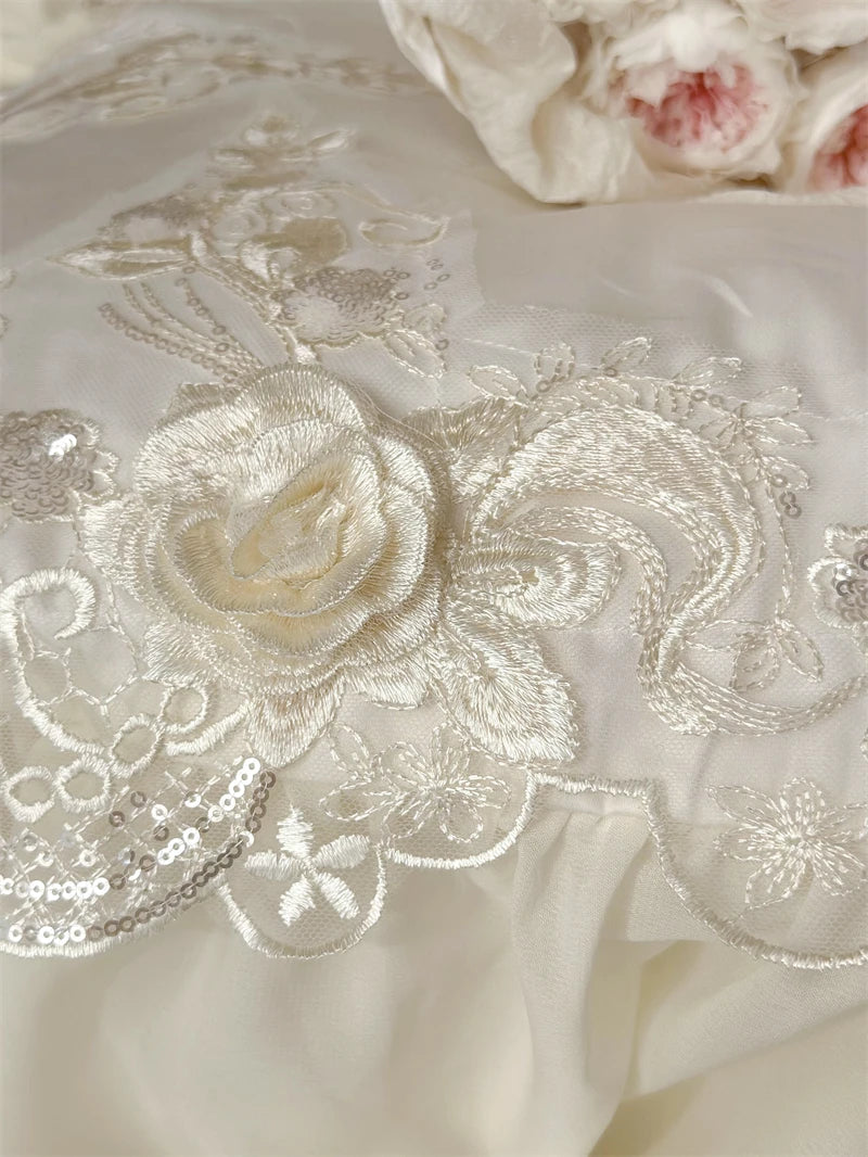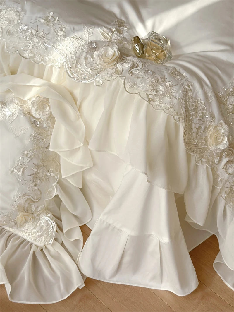 Egyptian Cotton Wedding Bedding Set, Romantic French Lace Ruffles, Flowers Embroidery, Duvet Cover, Bed Sheet, Pillowcases
