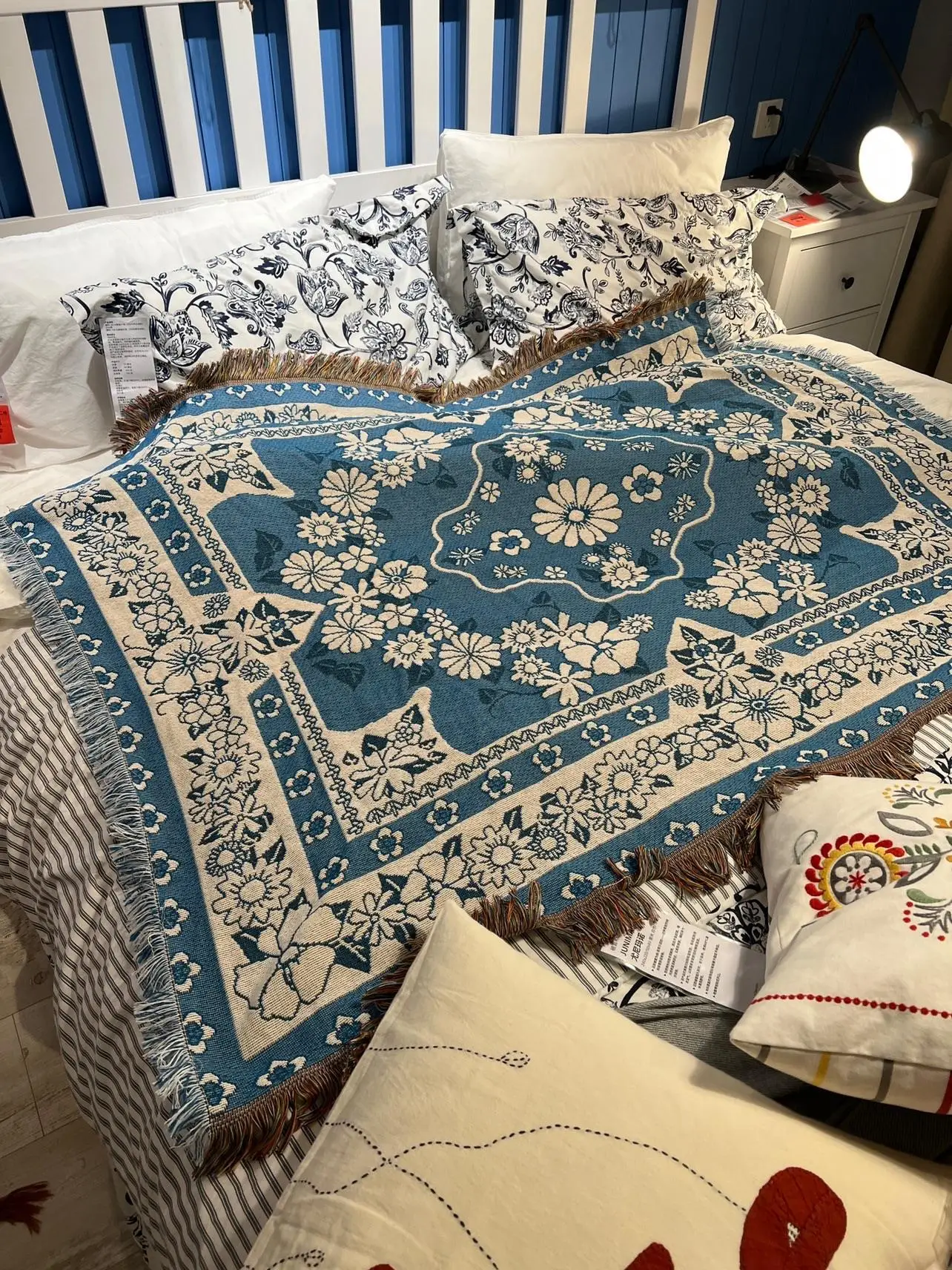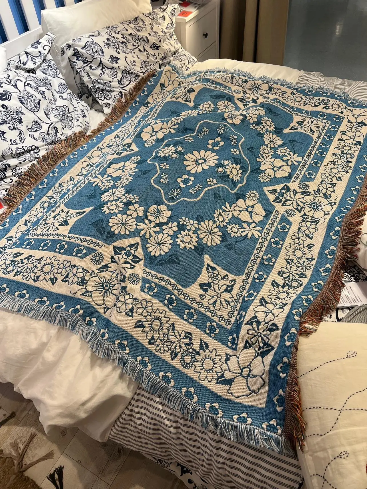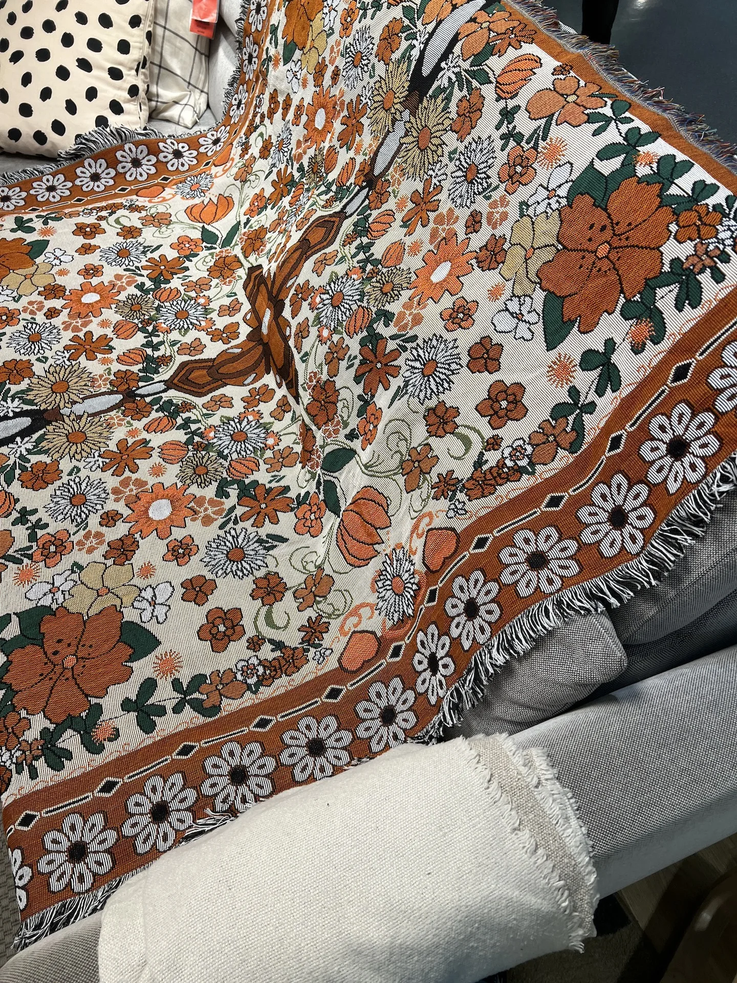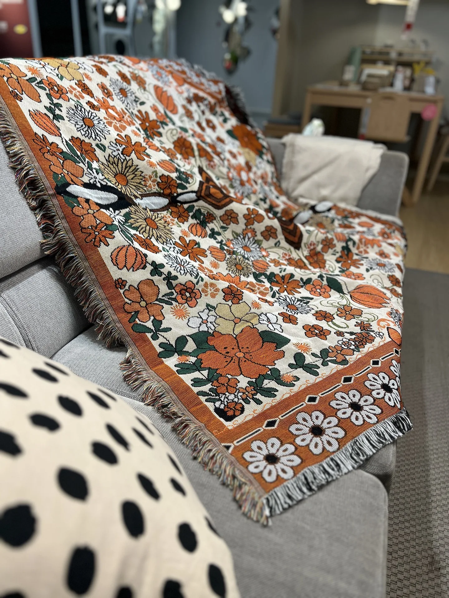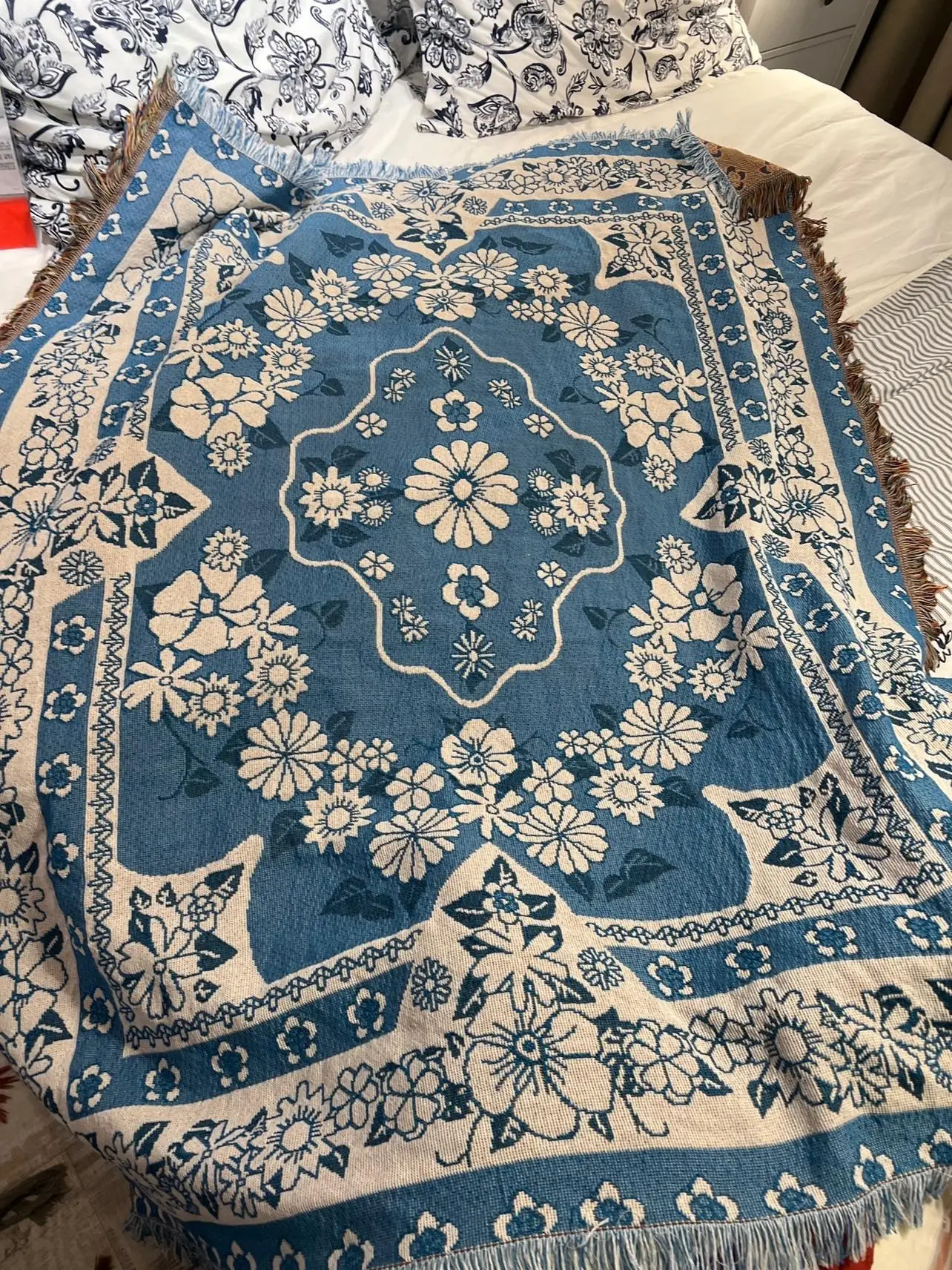 【Multifunctional Design】The throw can be used as a sofa blanket, tablecloth, carpet, or tapestry