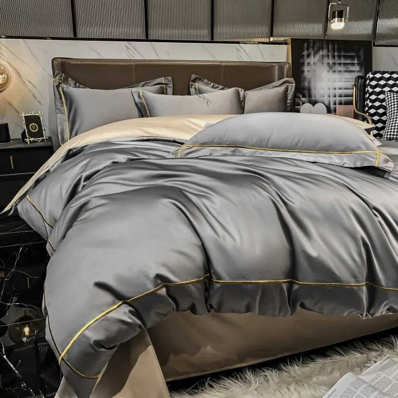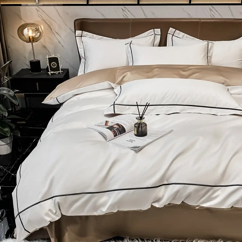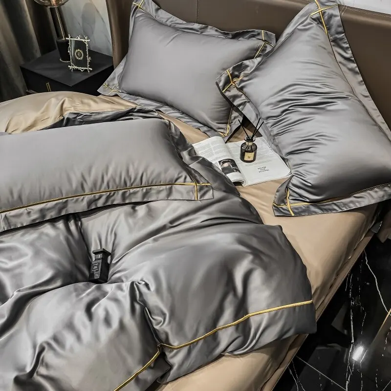 European Luxury Bedding Set Luxury Embroidery Washed Silk Duvet Cover Bed Sheets and Pillowcases King Size Bedding Set