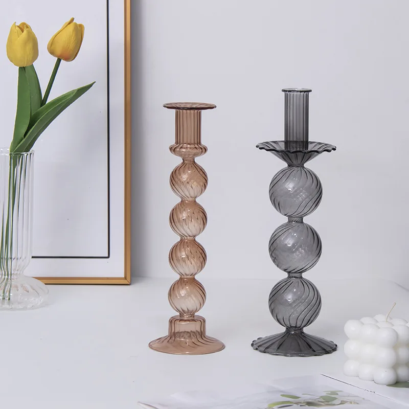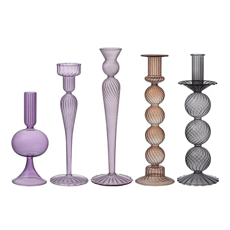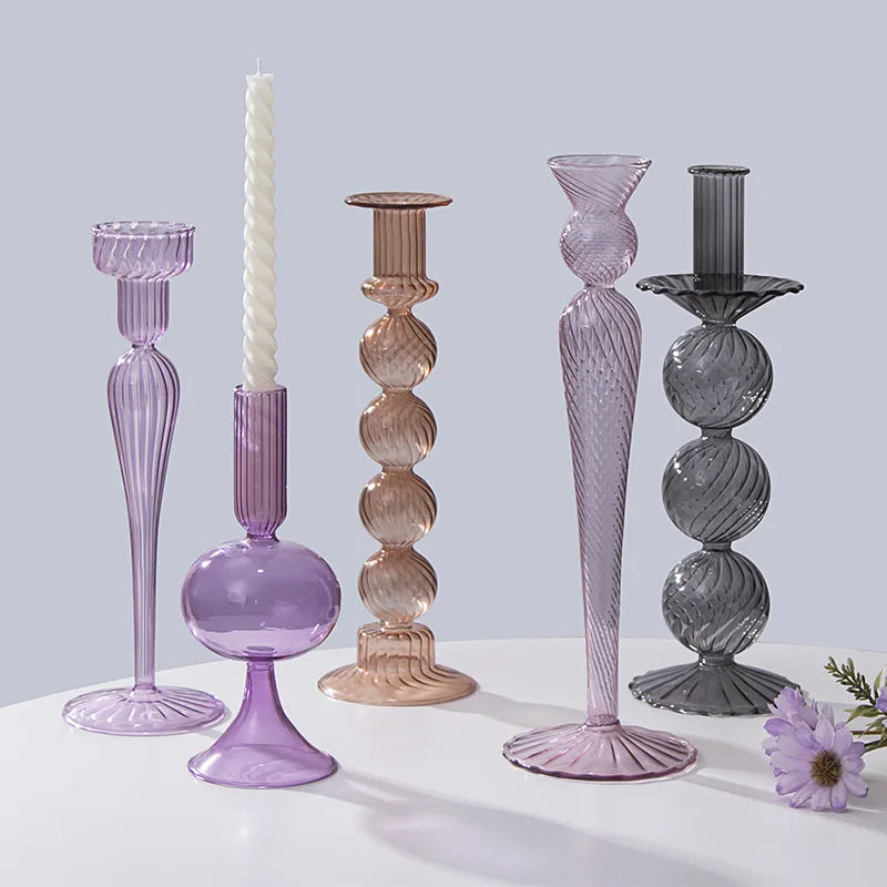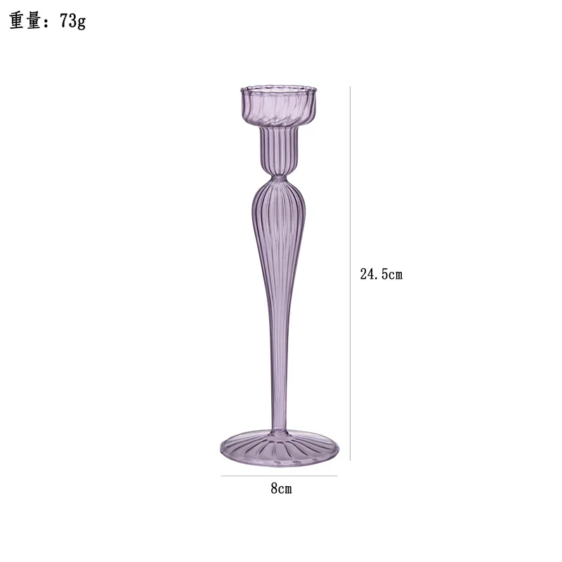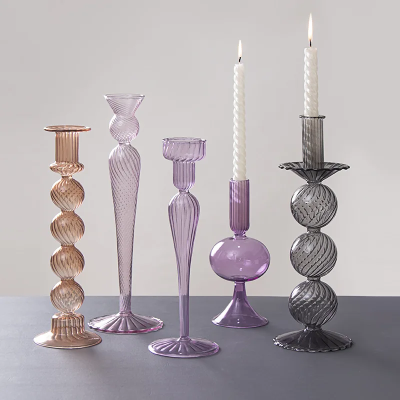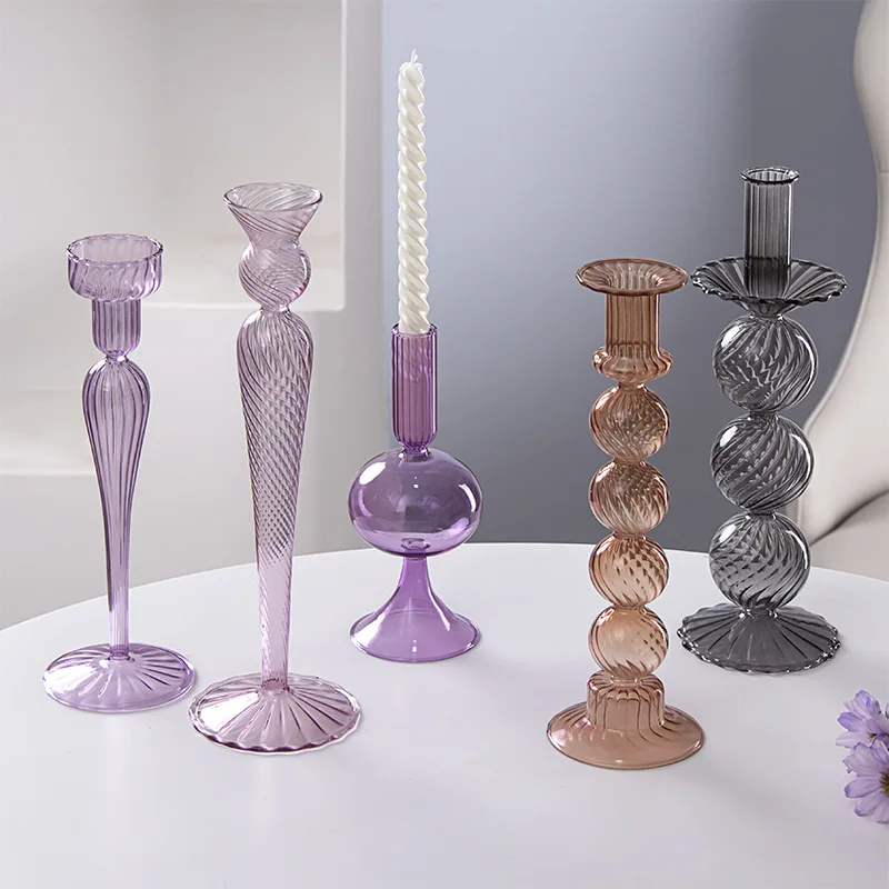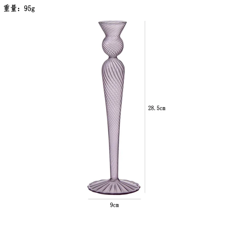 European Style Hand Blown Lilac Glass Candle Holder High Quality Decorative Wedding Table Centerpiece Party Decor Candlestick
