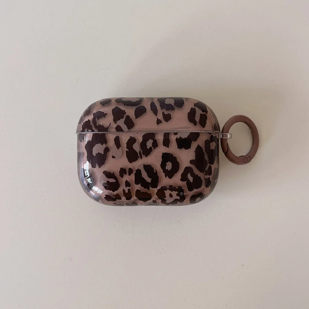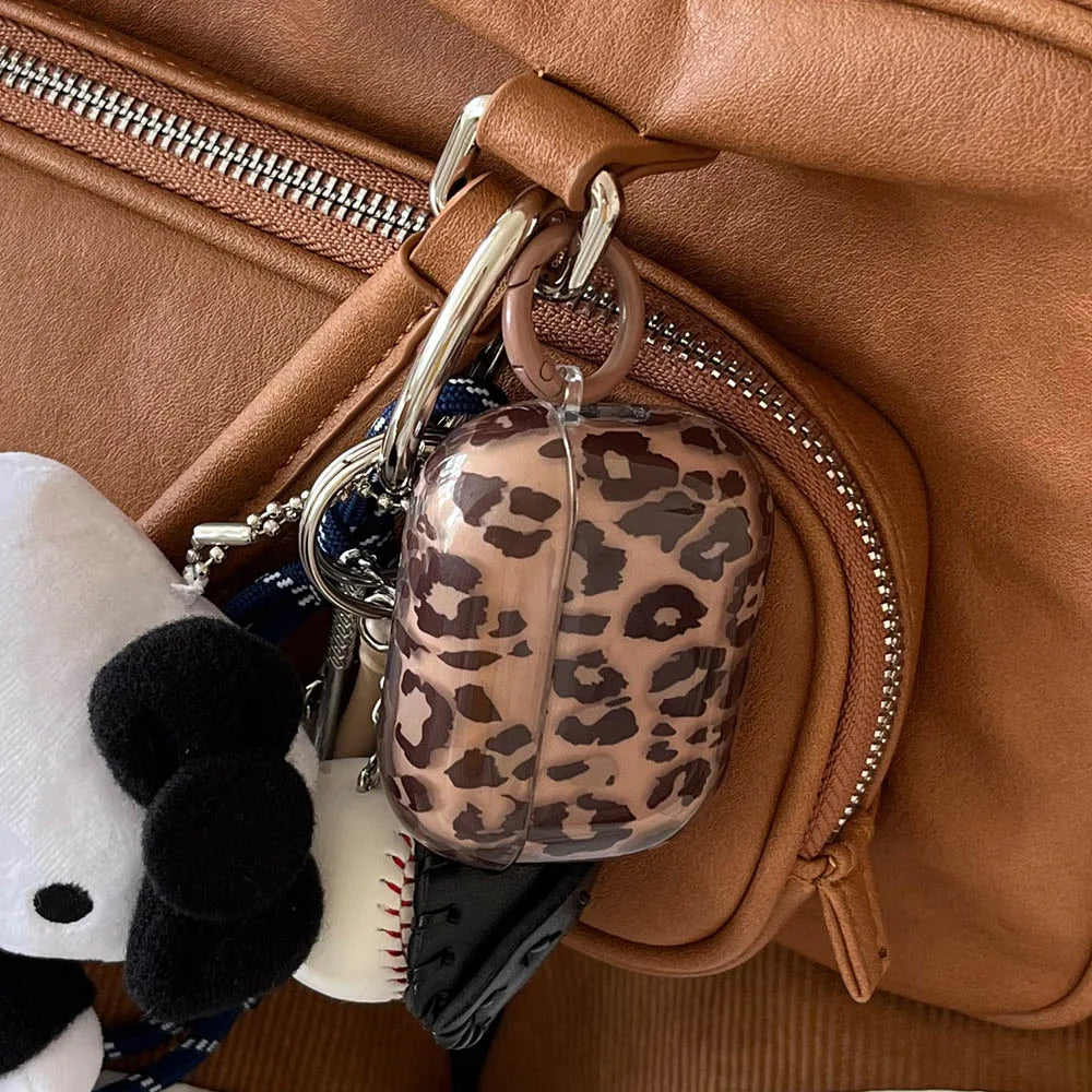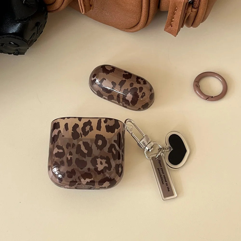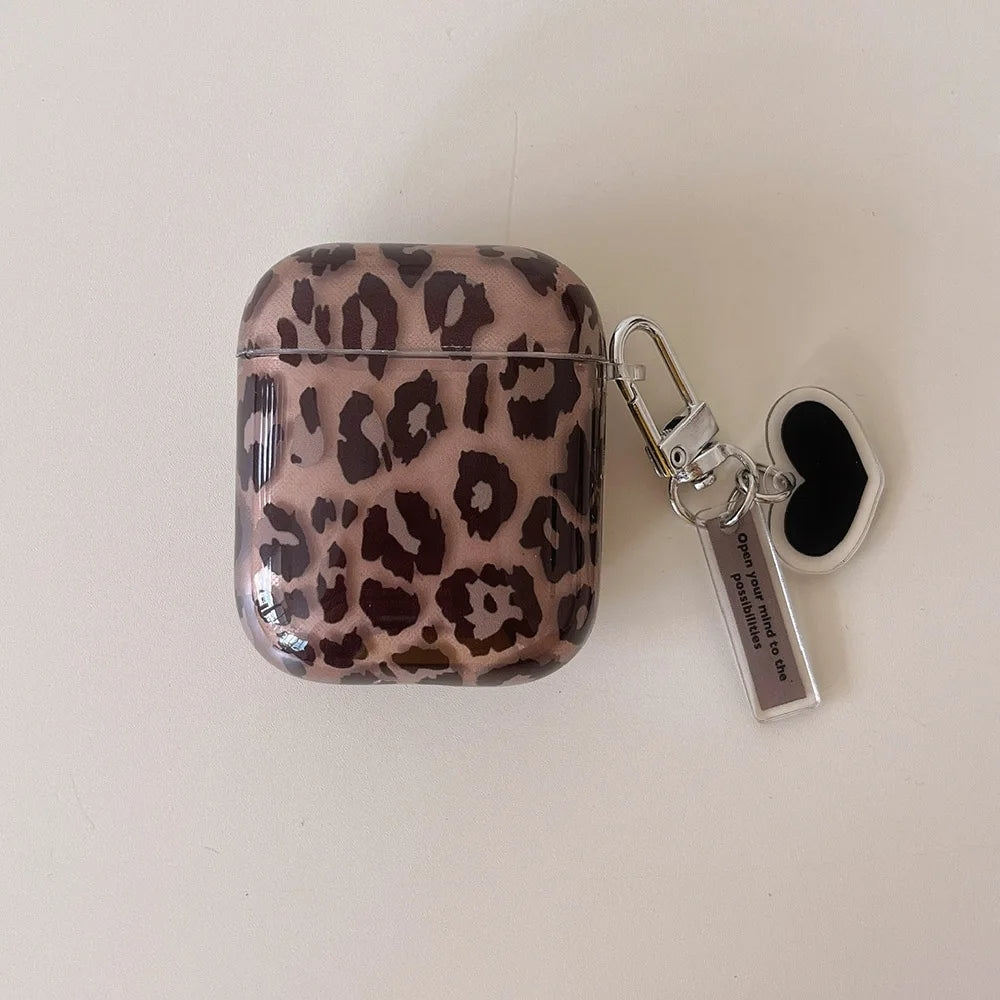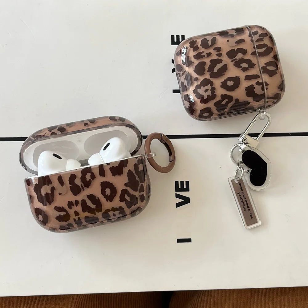 fashion luxury transparent leopard print pattern black love heart Pendant for airpods 4 3 1 pro 2 soft silicone protection case