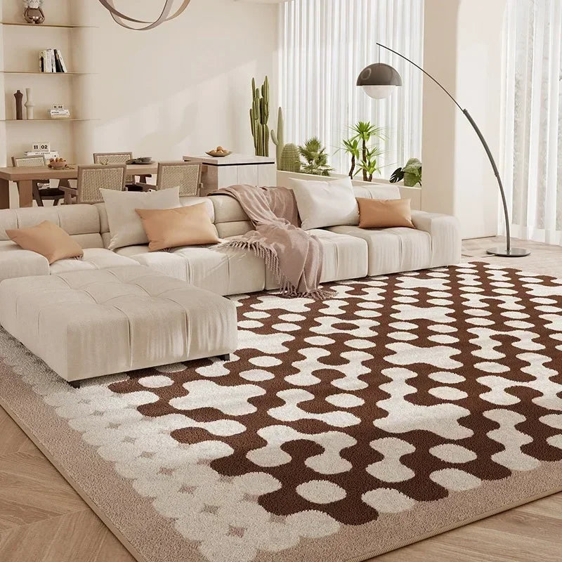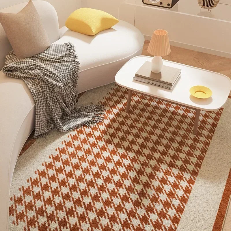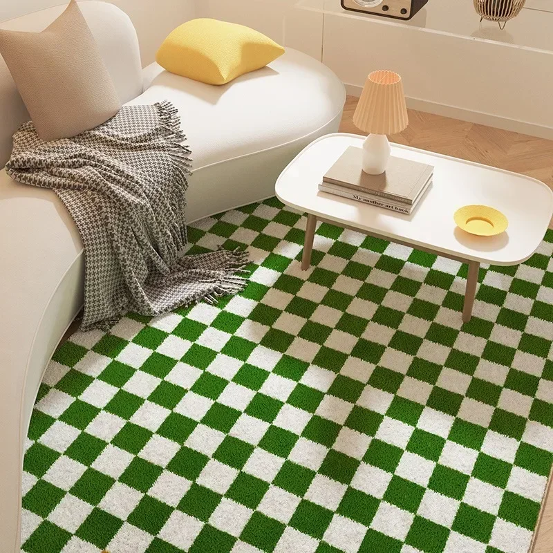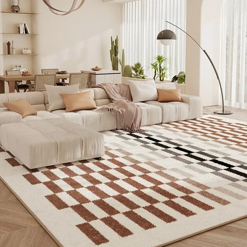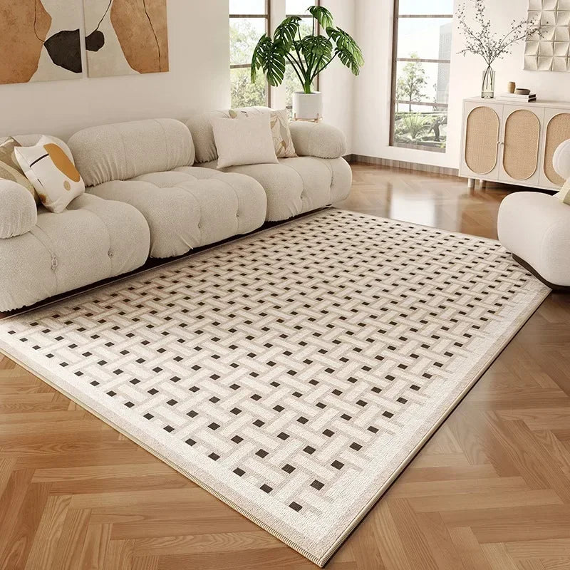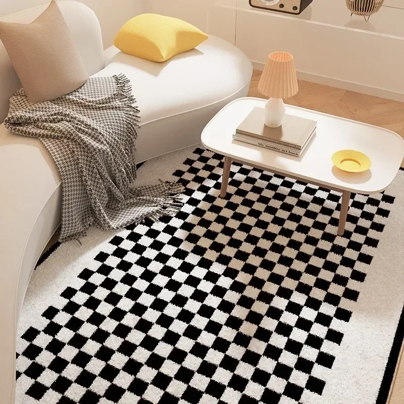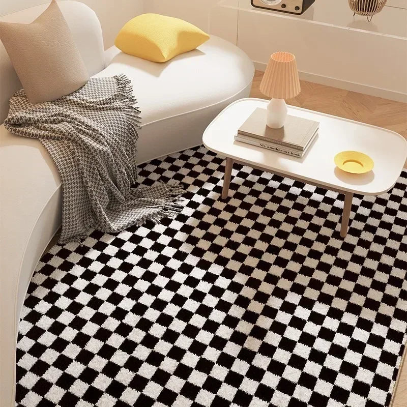 Fluffy Soft Bedside Rug Modern Style Carpets for Living Room Large Area Bedroom Decor Plaid Pattern Carpet Thick Plush Study Mat