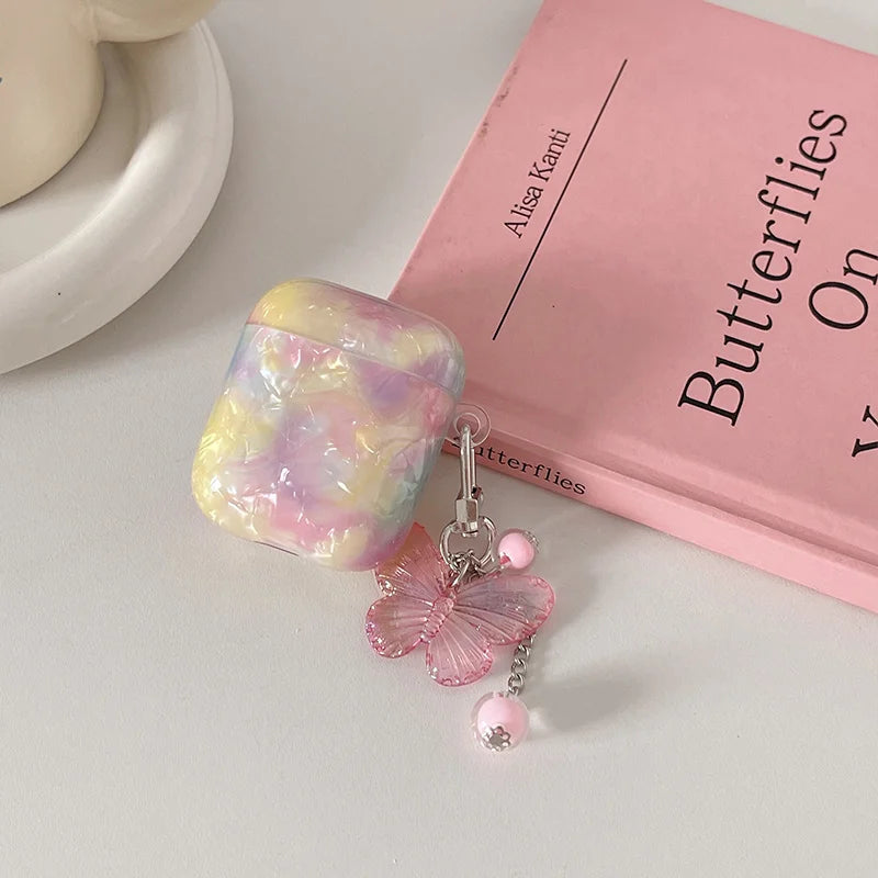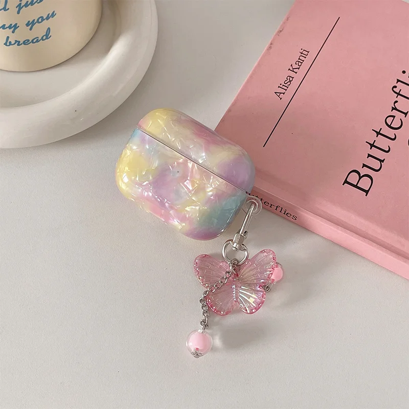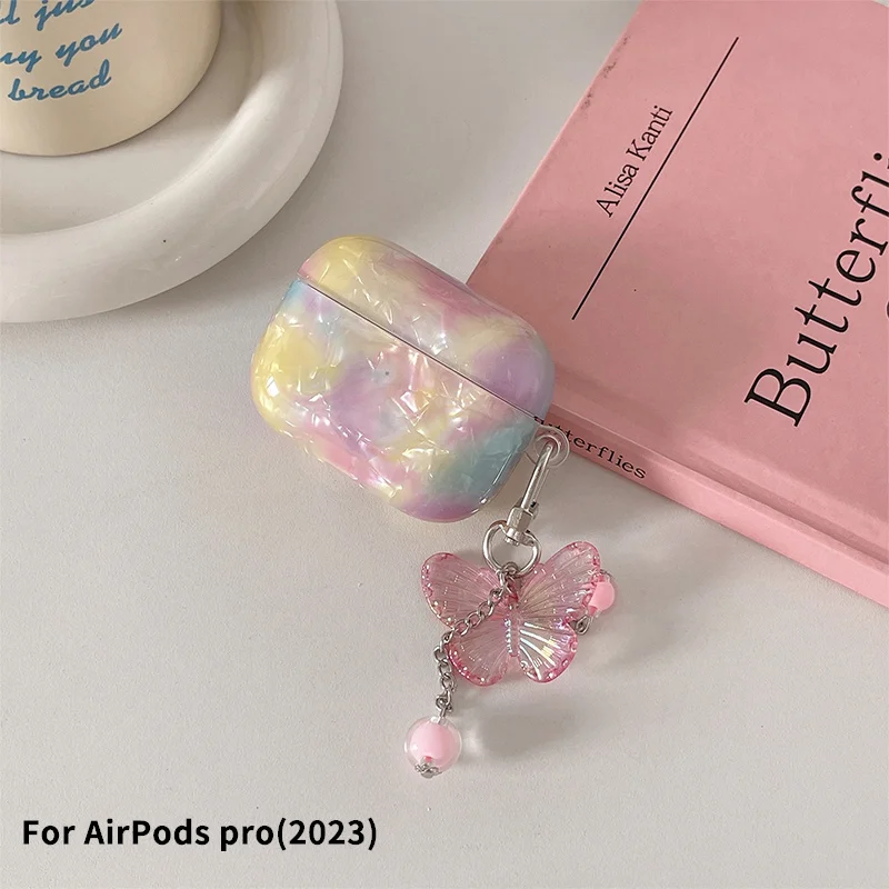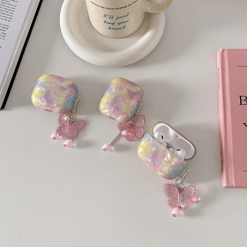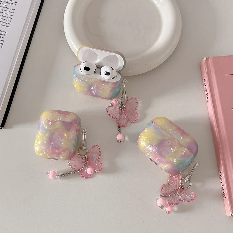 For Apple AirPods 4 Cover Rainbow Headset Case For AirPods 4 4th Shell Hard PC Coque Lovely Girls Cases With Butterfly Pendant