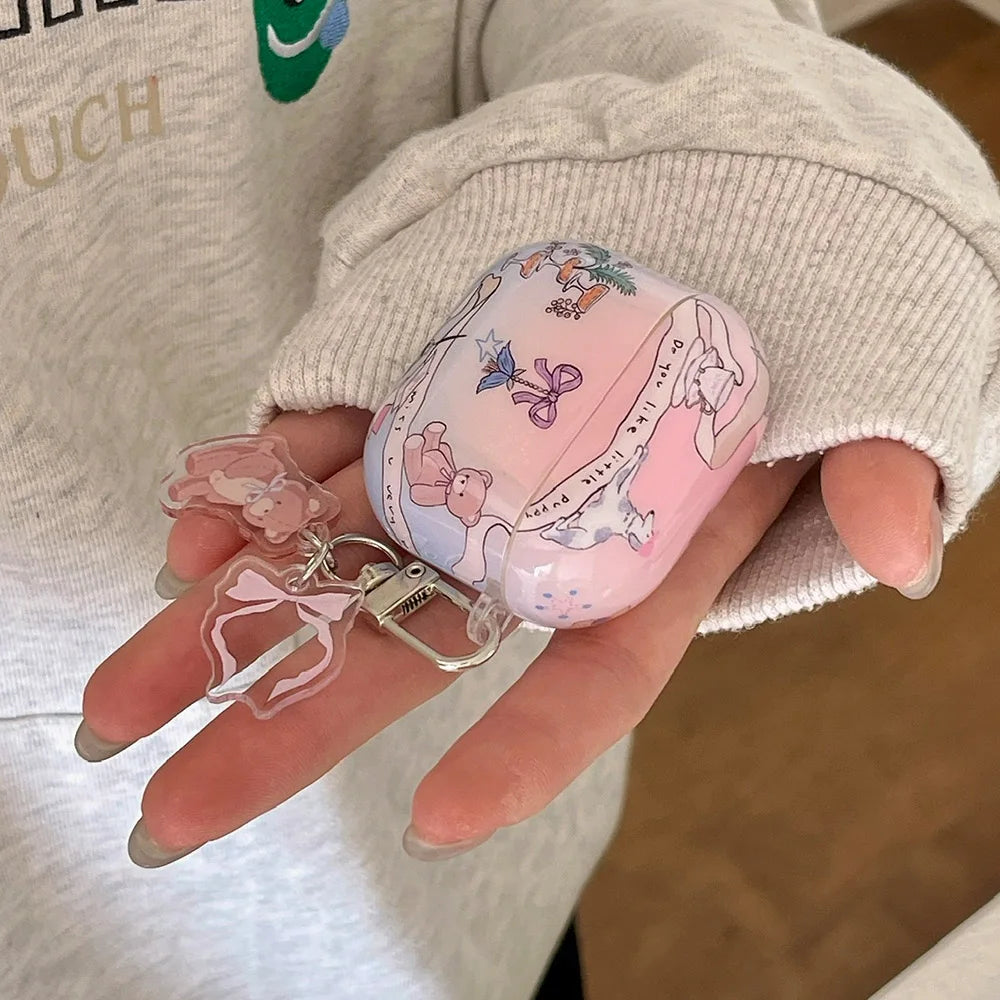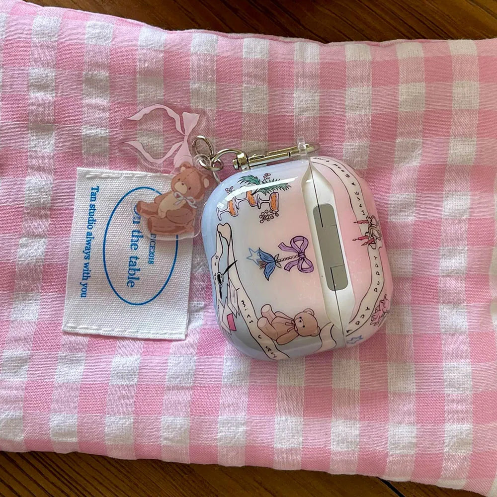 for girl gift cute bear pink silicone soft case for apple airpdos 1 2 3 4 pro 2 3nd generation wireless bluetooth earphone cover