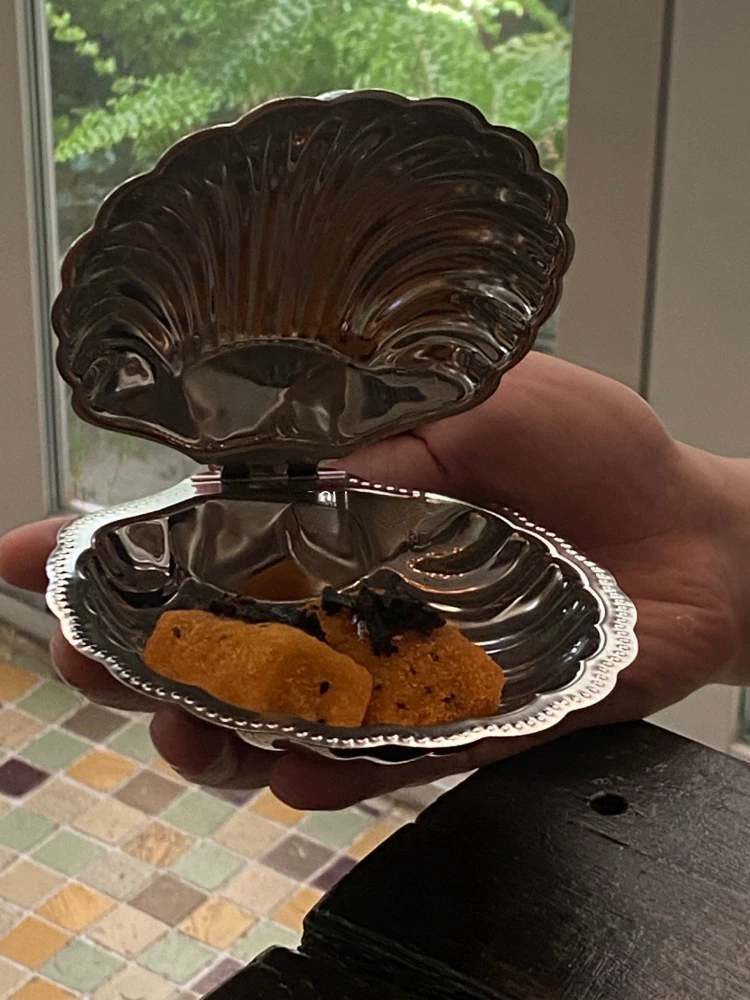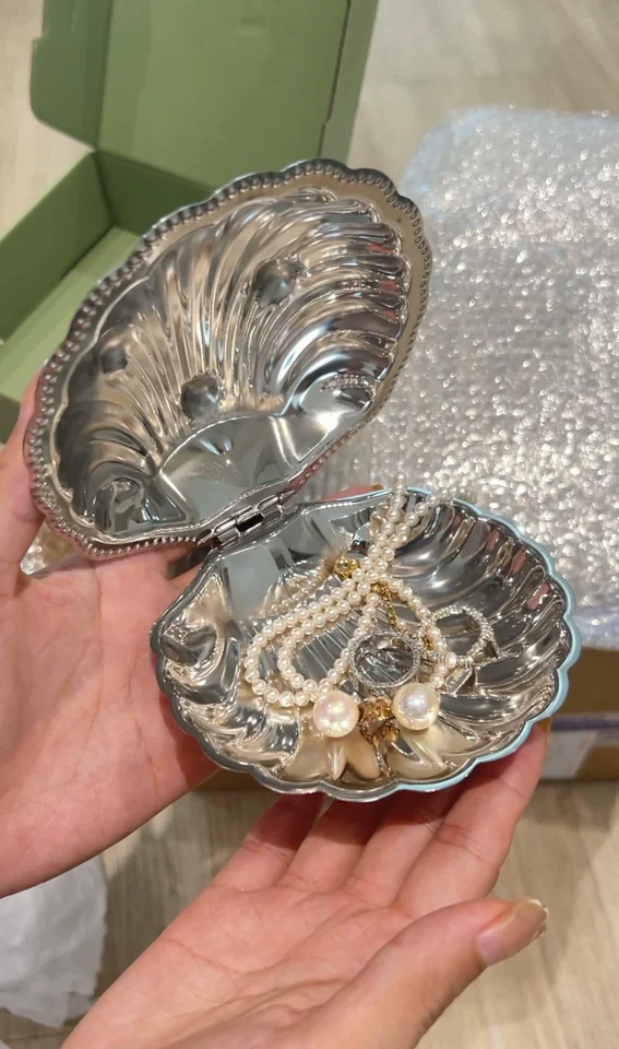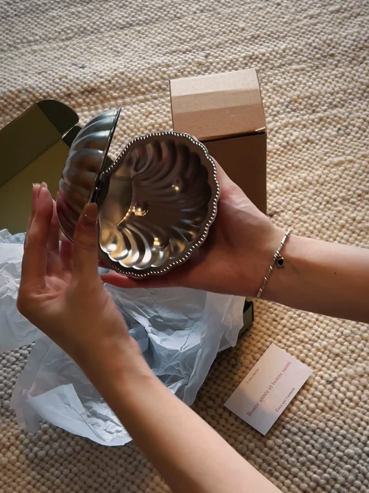 French Retro Stainless Steel Shell Butter Box Jewelry Storage Box Antique Food Box