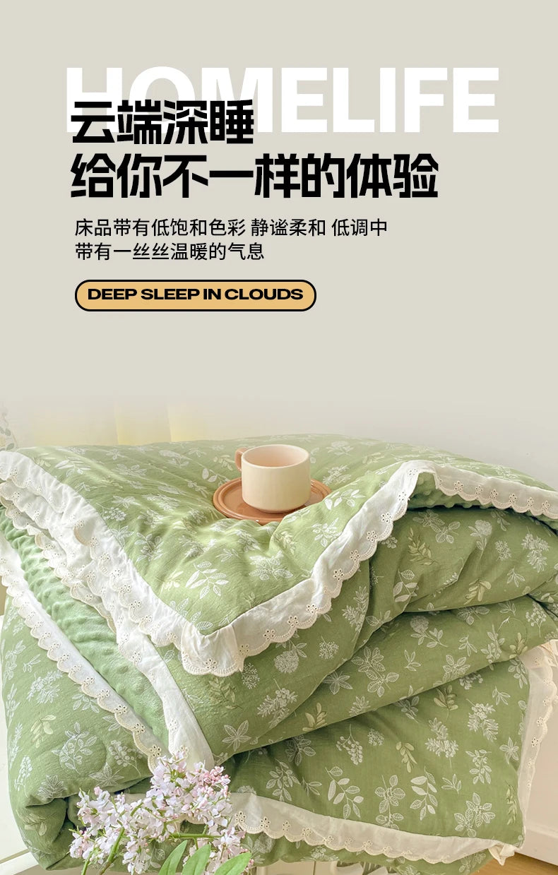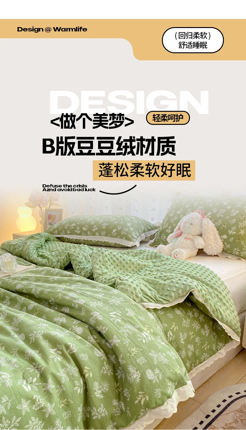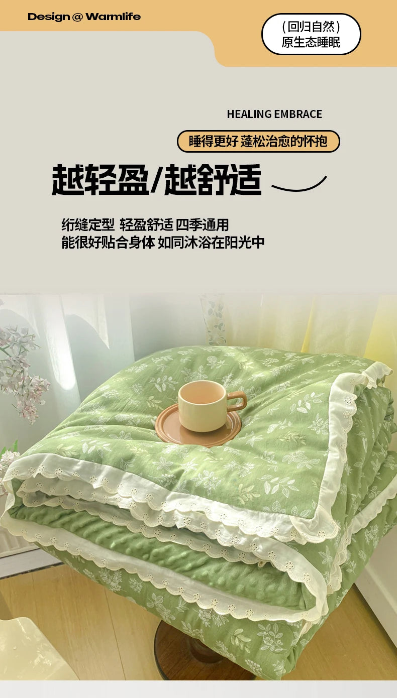 French Style Double-Layer Yarn Bean Quilt Spring and Autumn Warmth Quilt Adult Double Four Seasons Comforter Quilt Lace Ruffles