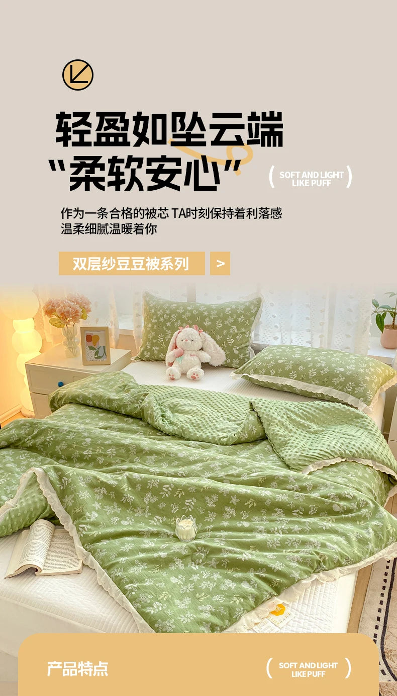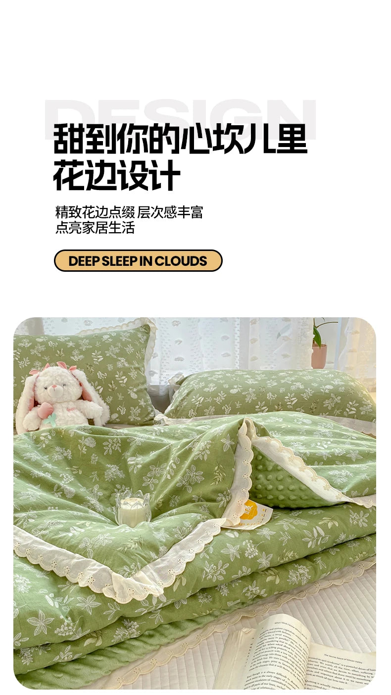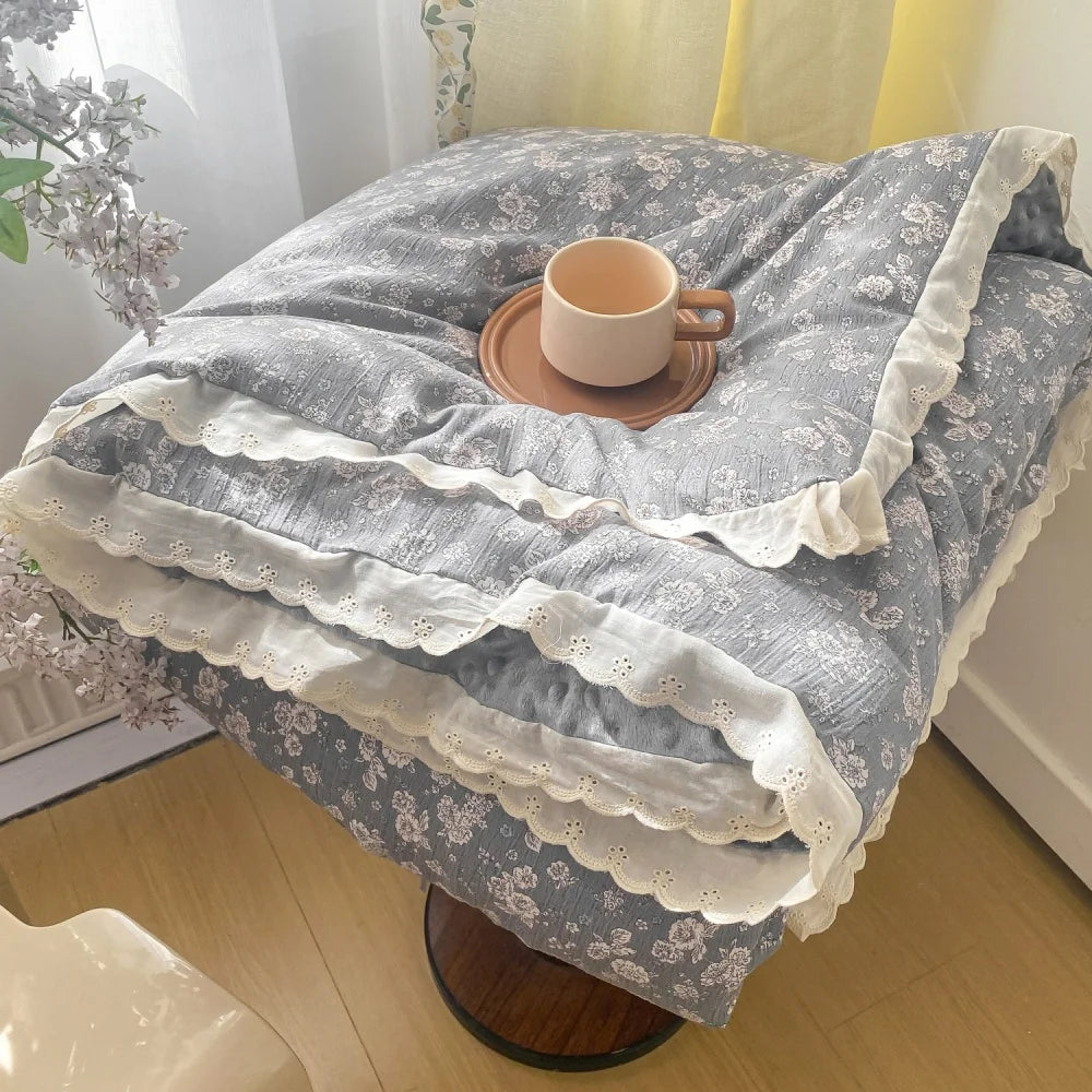French Style Double-Layer Yarn Bean Quilt Spring and Autumn Warmth Quilt Adult Double Four Seasons Comforter Quilt Lace Ruffles
