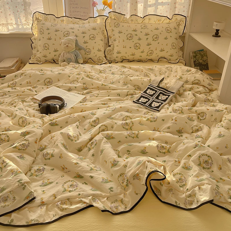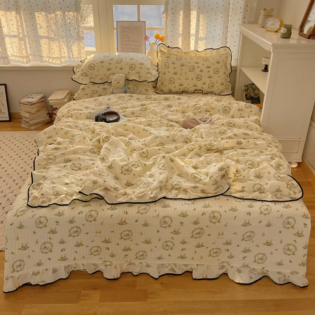 French Style Summer Quilt NEW Falbala Cool Feeling Quilt Bare Sleeping Skin-Friendly For Adult Romantic Bedroom Decor 1PC