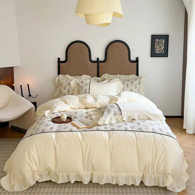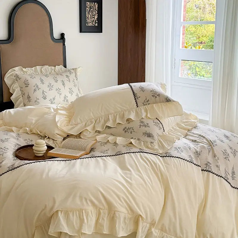 French Washed Cotton Quilt Bedding Set Four-piece Set Super Soft Princess Style Retro Pleated Small Fresh Ruffle Three-piece Set