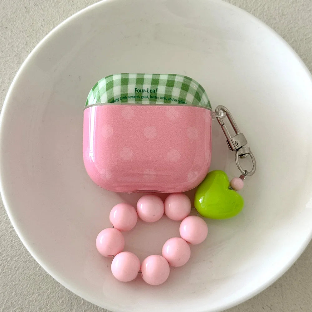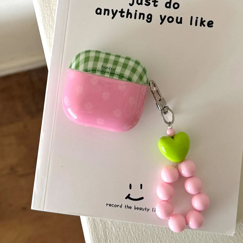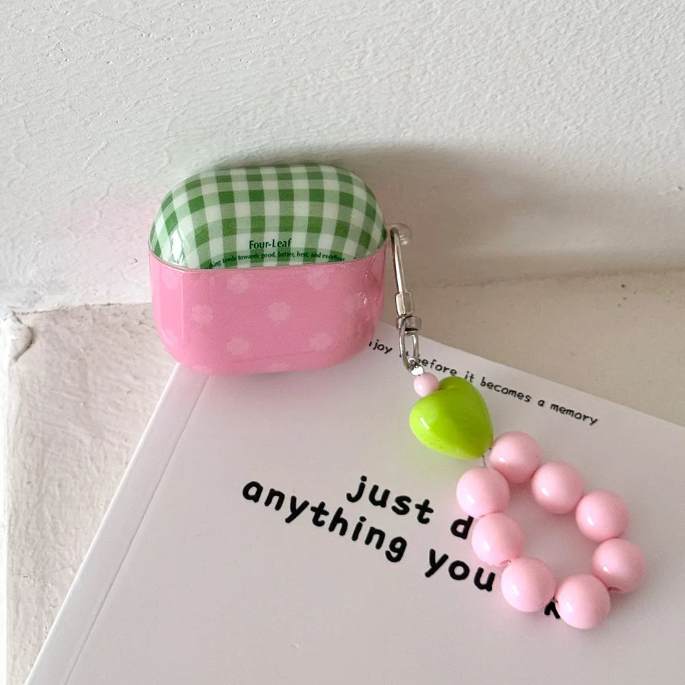 Fresh Green Grid Flower Bracelet Protection Cover for AirPods Pro or 2 Earphone Case for AirPods 1 2 3 4 Accessory Headset Shell