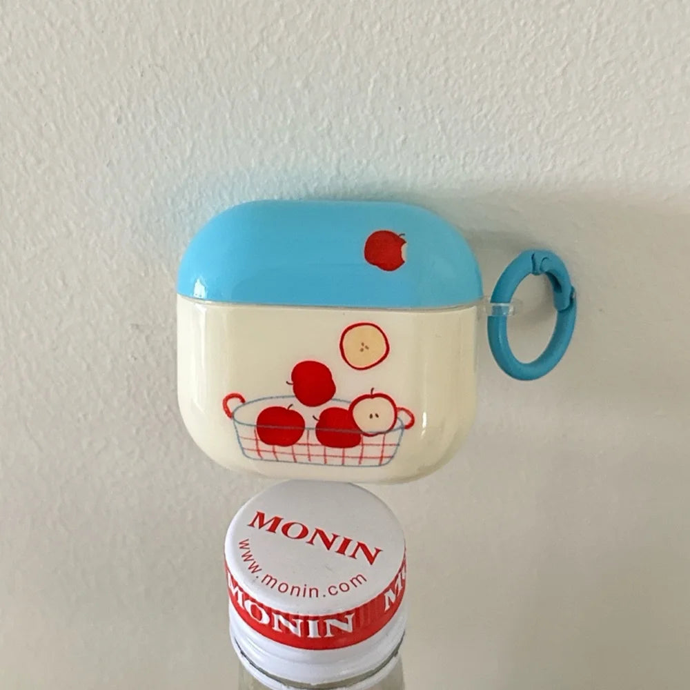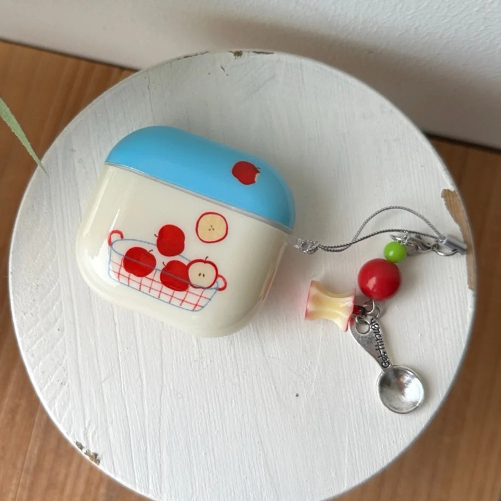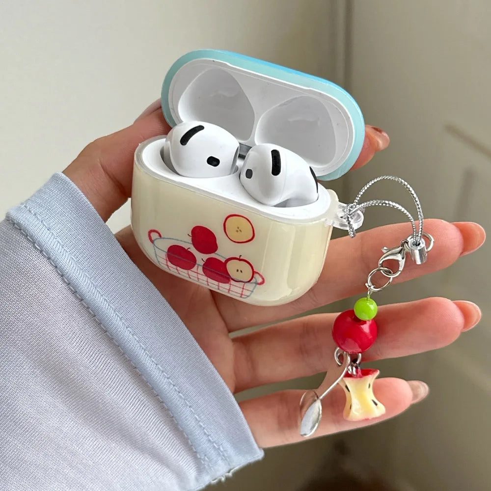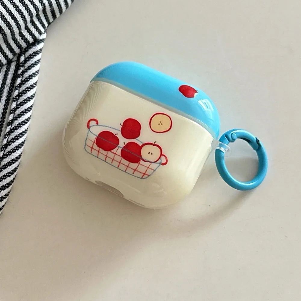 Fresh Lovely Blue Apple Smooth Soft Bluetooth Earphone Case For AirPods 4 3 2 1 Pro Pro 2 Protection Cover Cute Chain Pendant