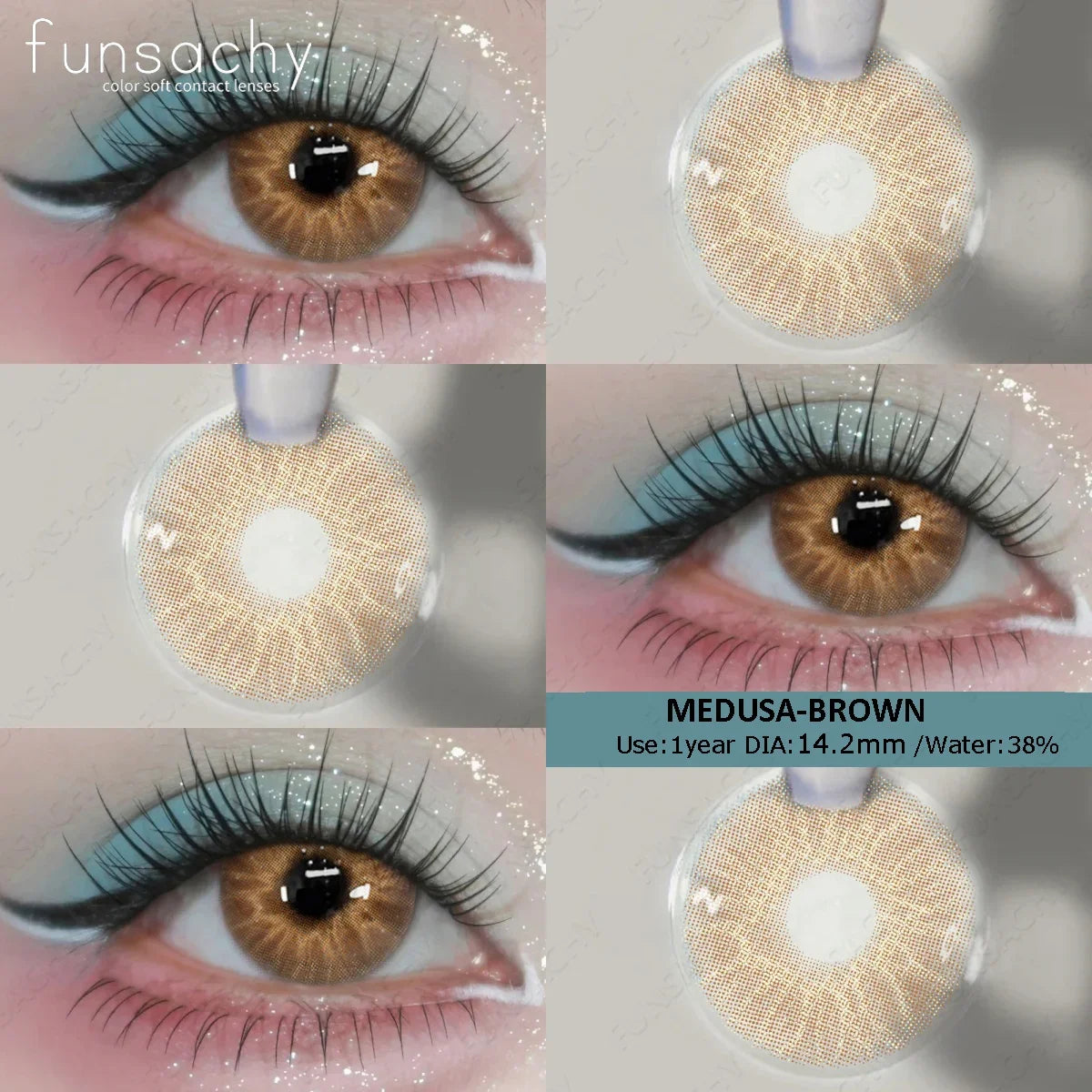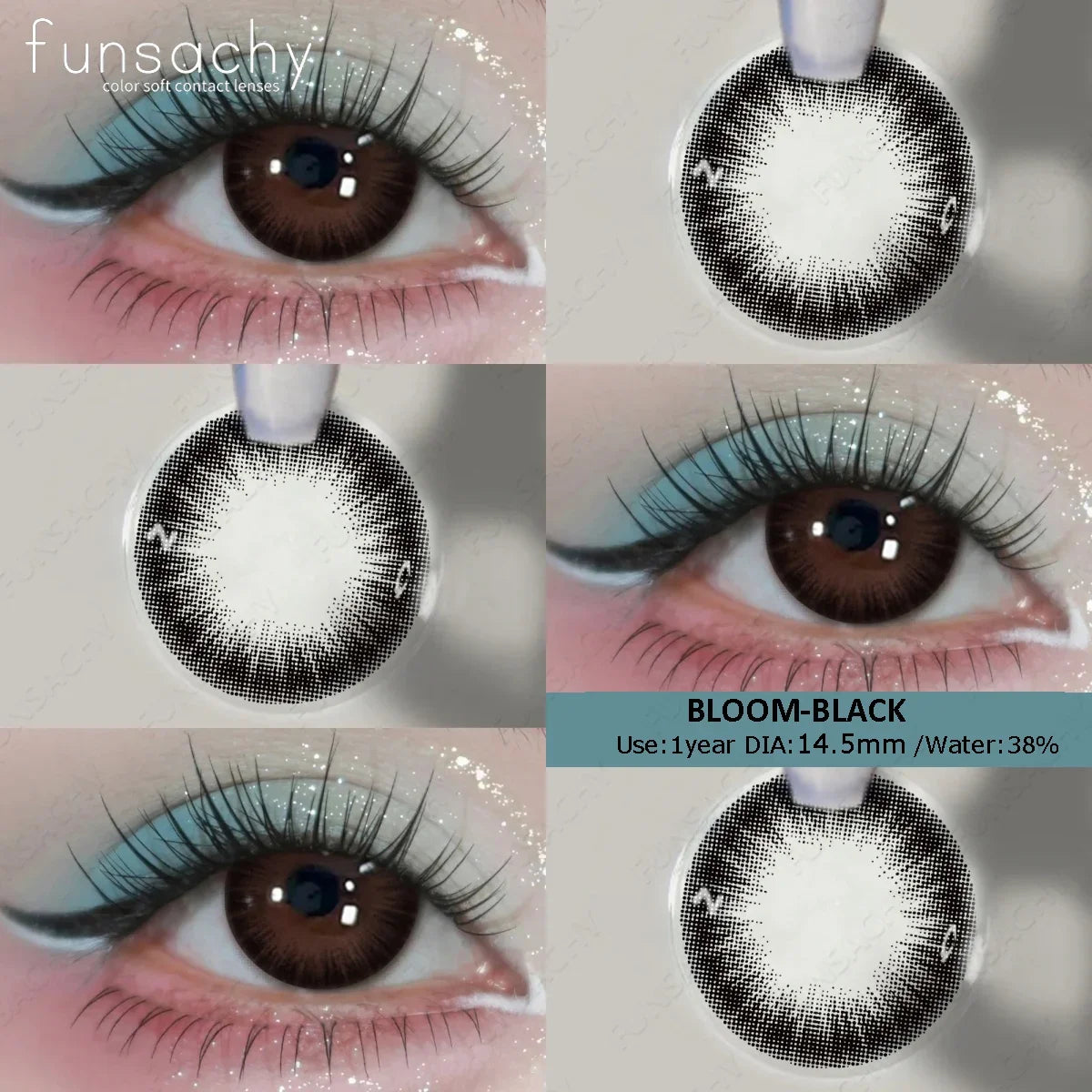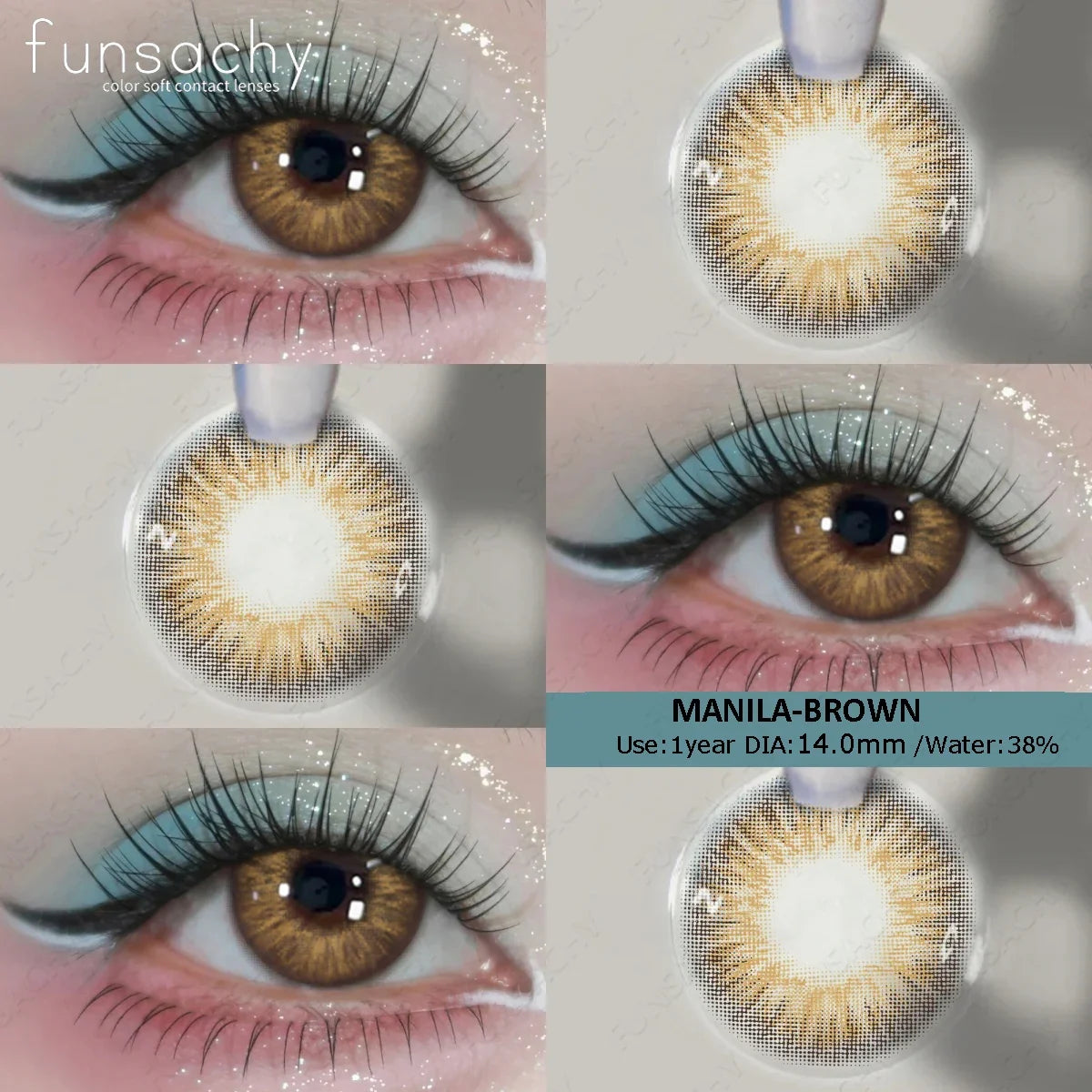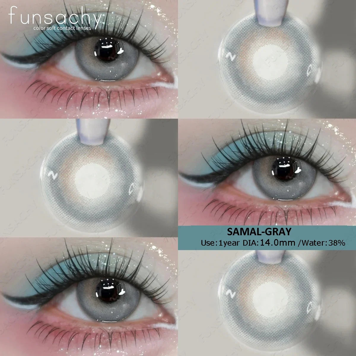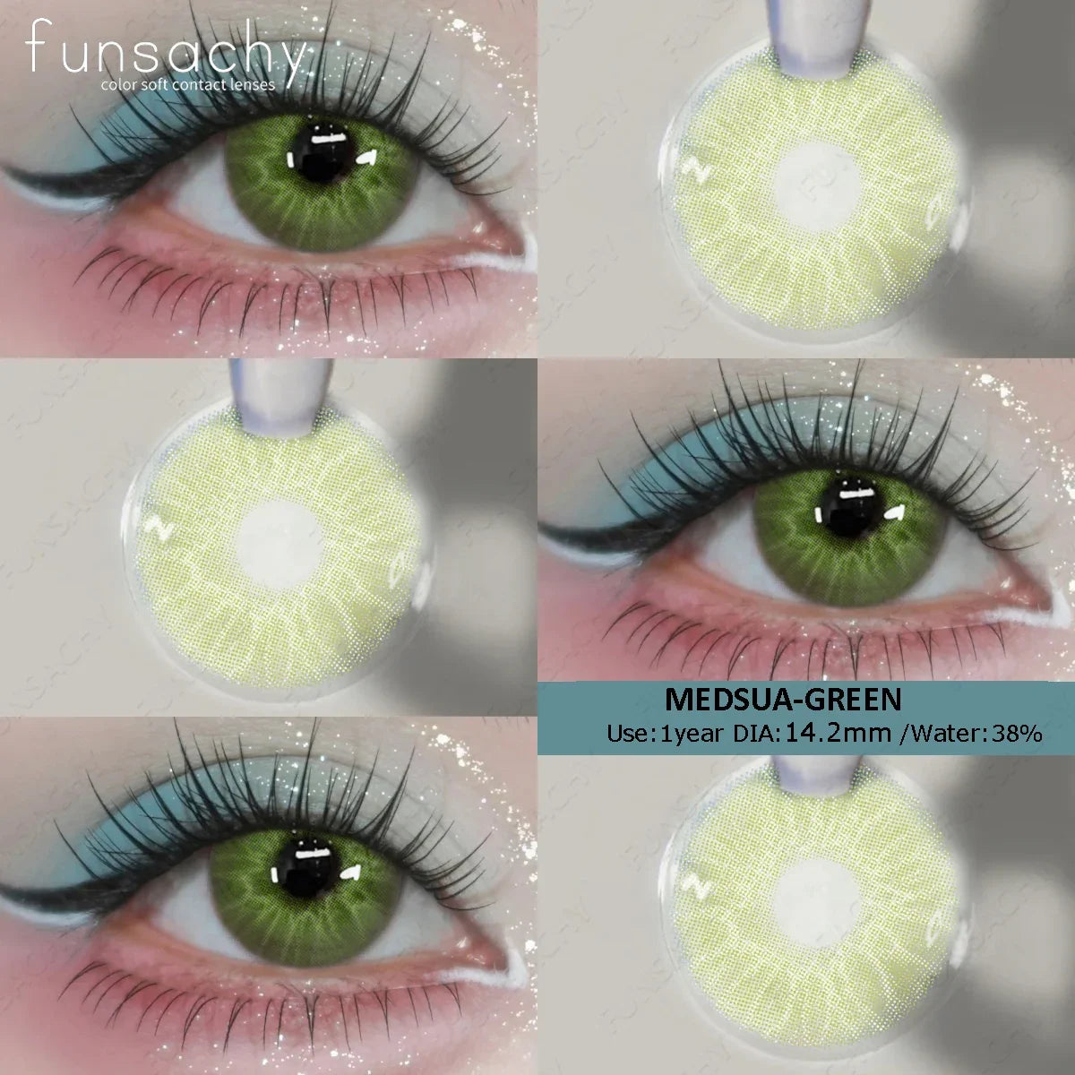 FUNSACHY Blue Lenses with Prescription Myopia Colored Contact Lenses for Eye Cosmetic Eye Contacts Lens with Degree Yearly Pupil