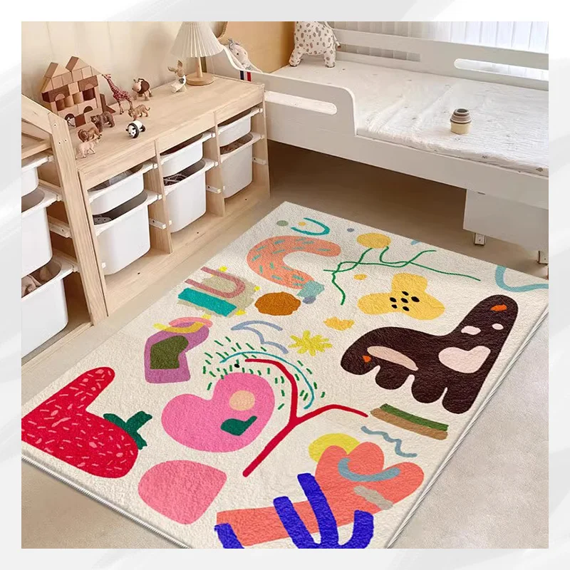 Graffiti Children's Bedroom Carpet Cartoon Cute Girl Carpet Baby Crawling Mat Creative Interesting Decoration Rug Plush Soft Rug