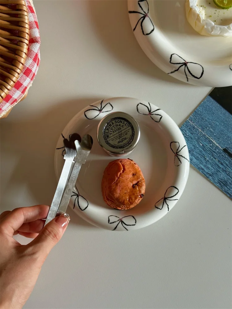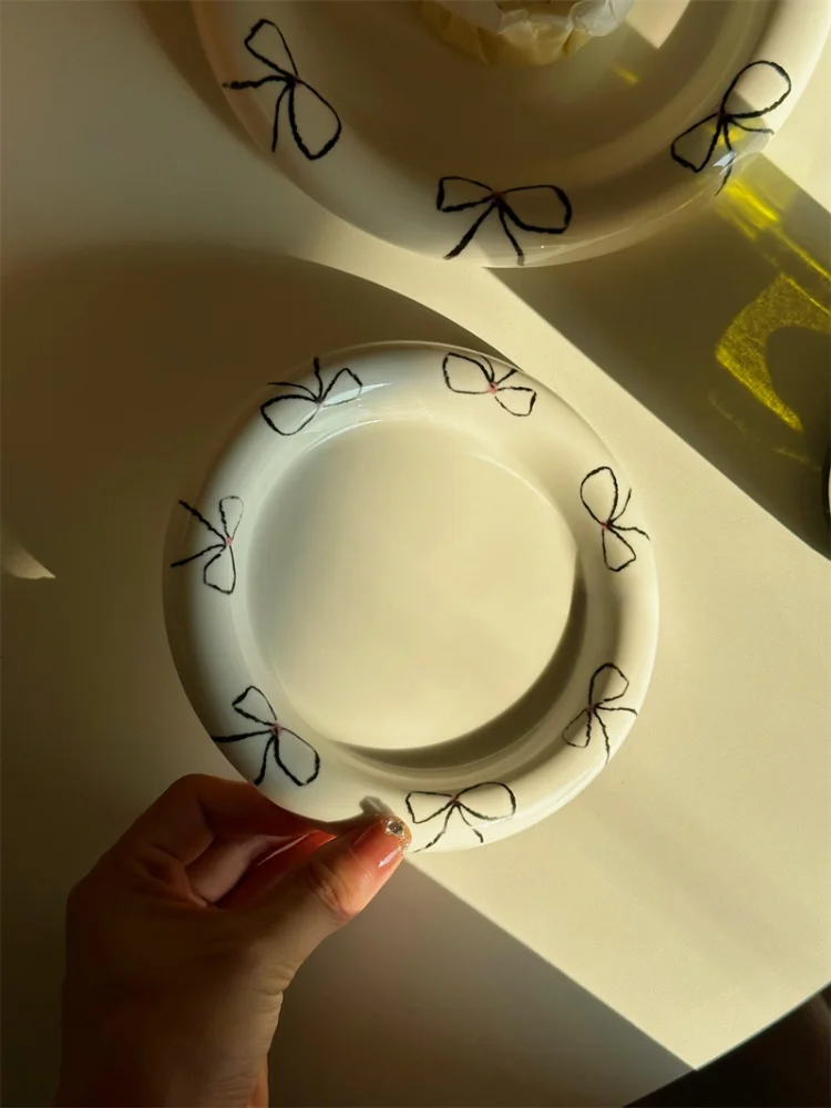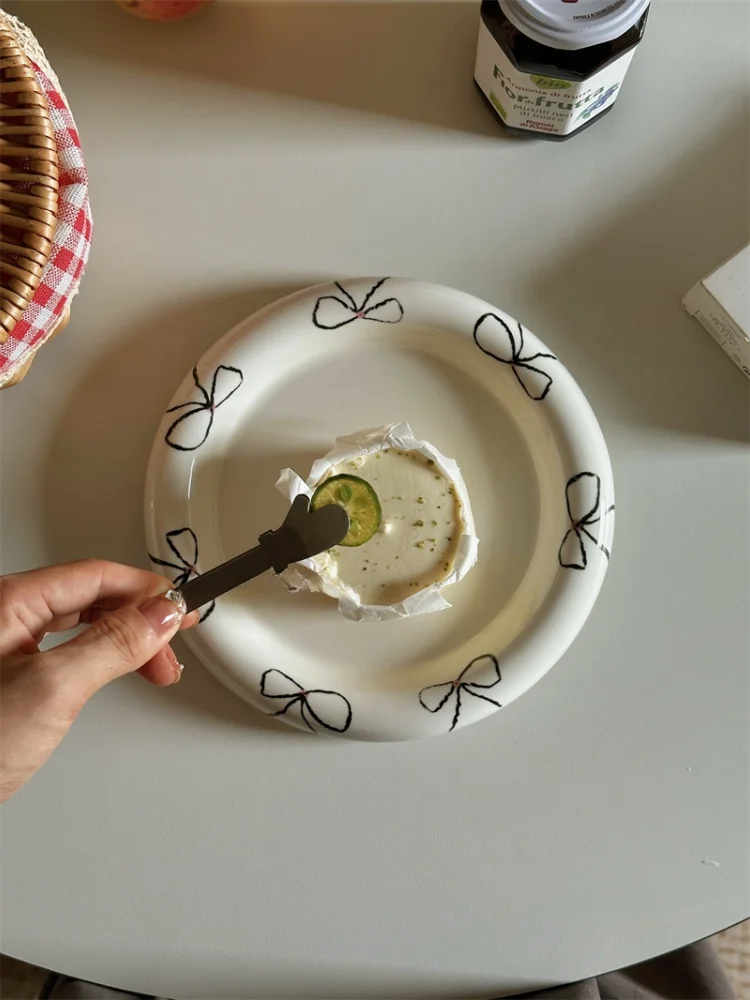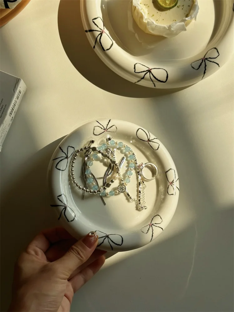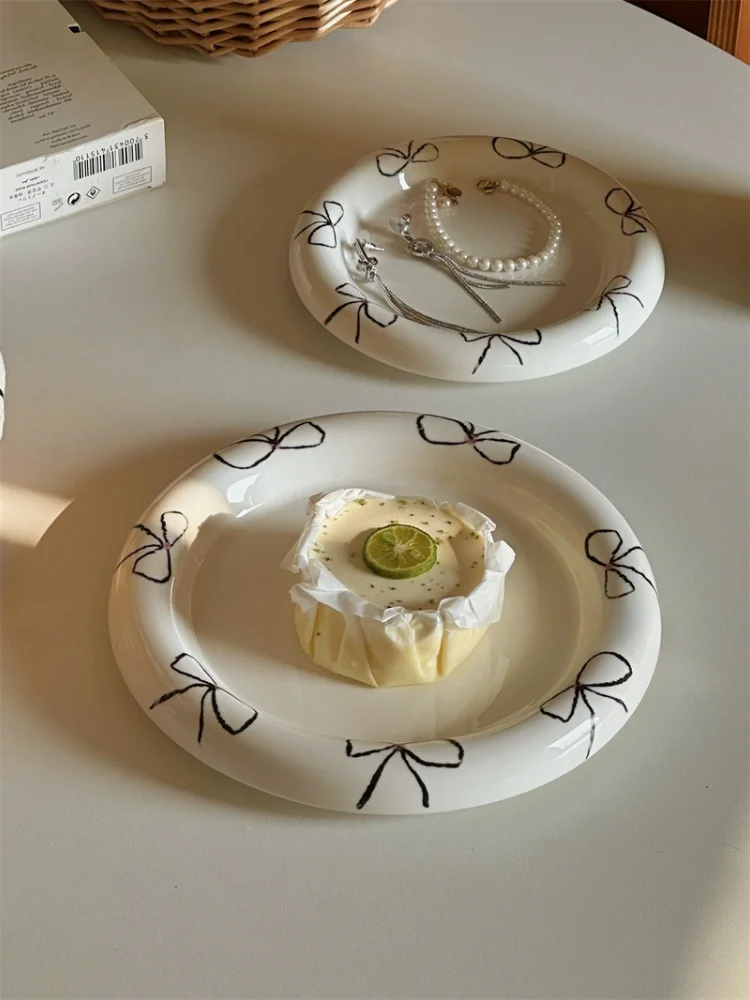 Hand Drawn Butterfly Bow White Dudu Plate Dessert Jewelry Storage Ceramic Plate Coffee Shop Plate