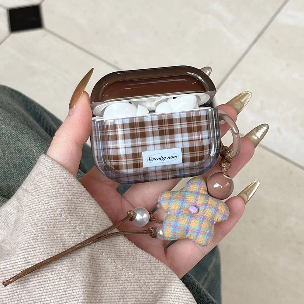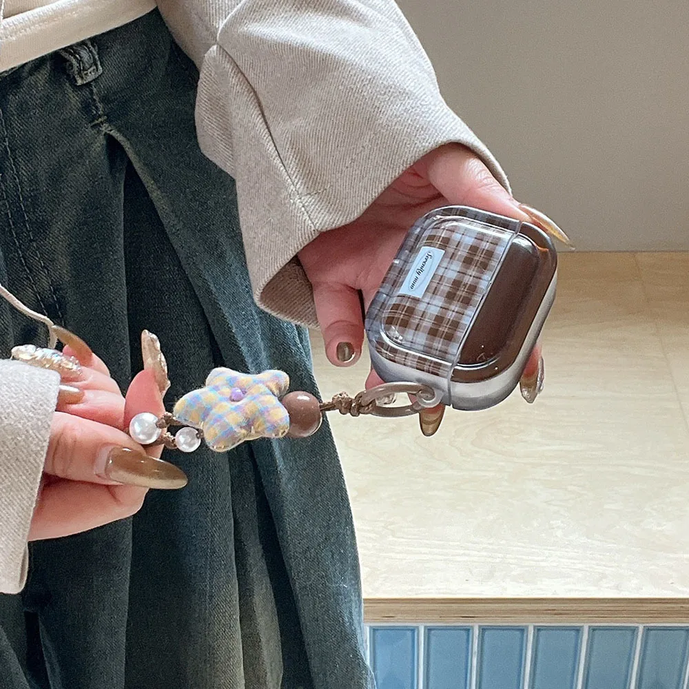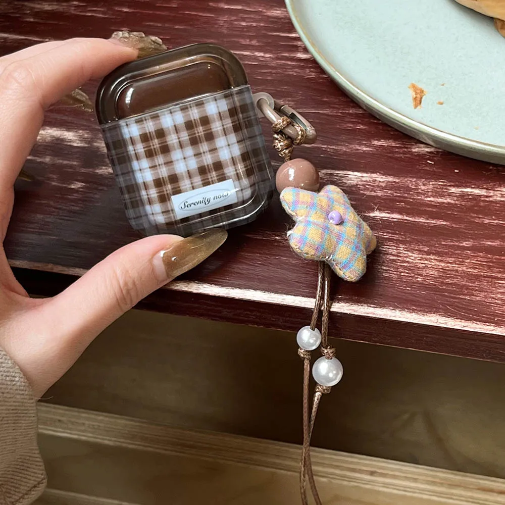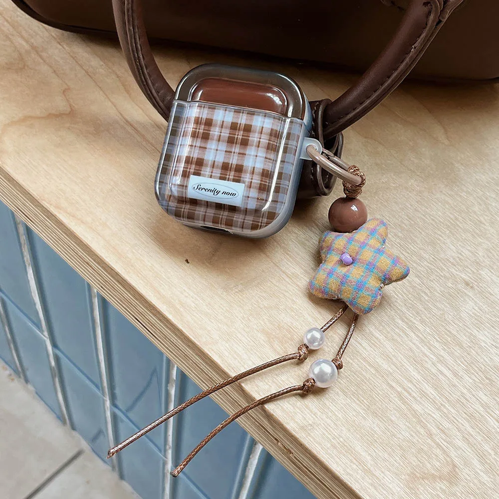 Ins Fashion Brown Grid Case For AirPods 4 ANC Pro 2 Earphone Protecitve Cover For AirPods 1 2 3 4th Soft Case with Star Keychain