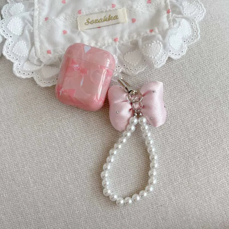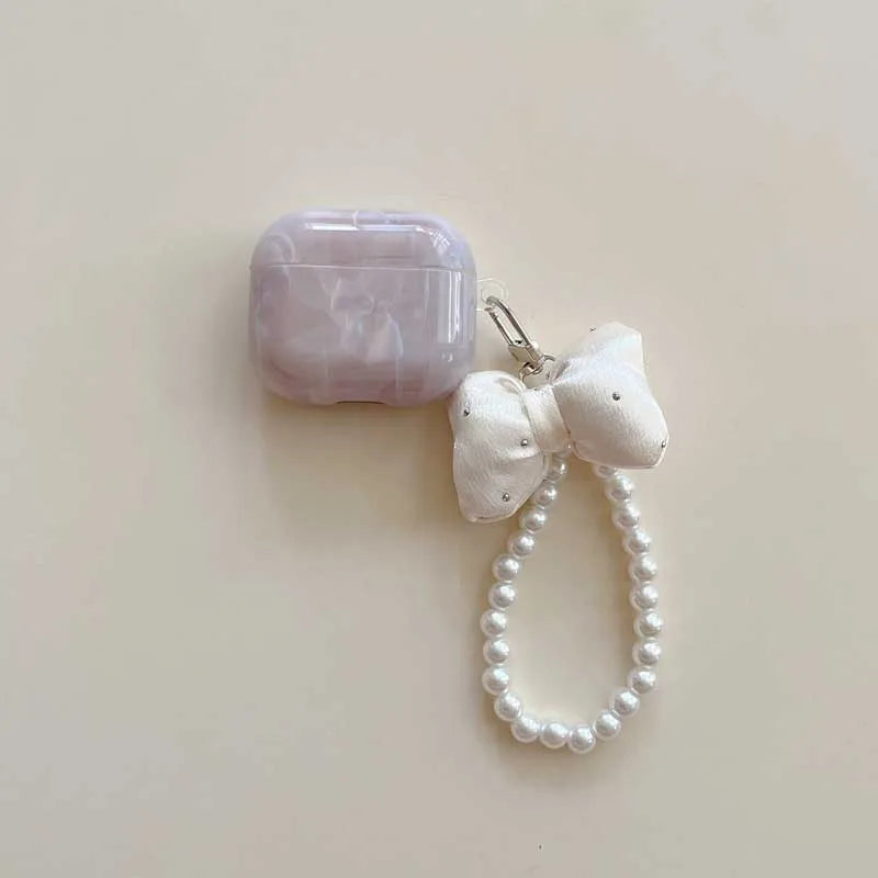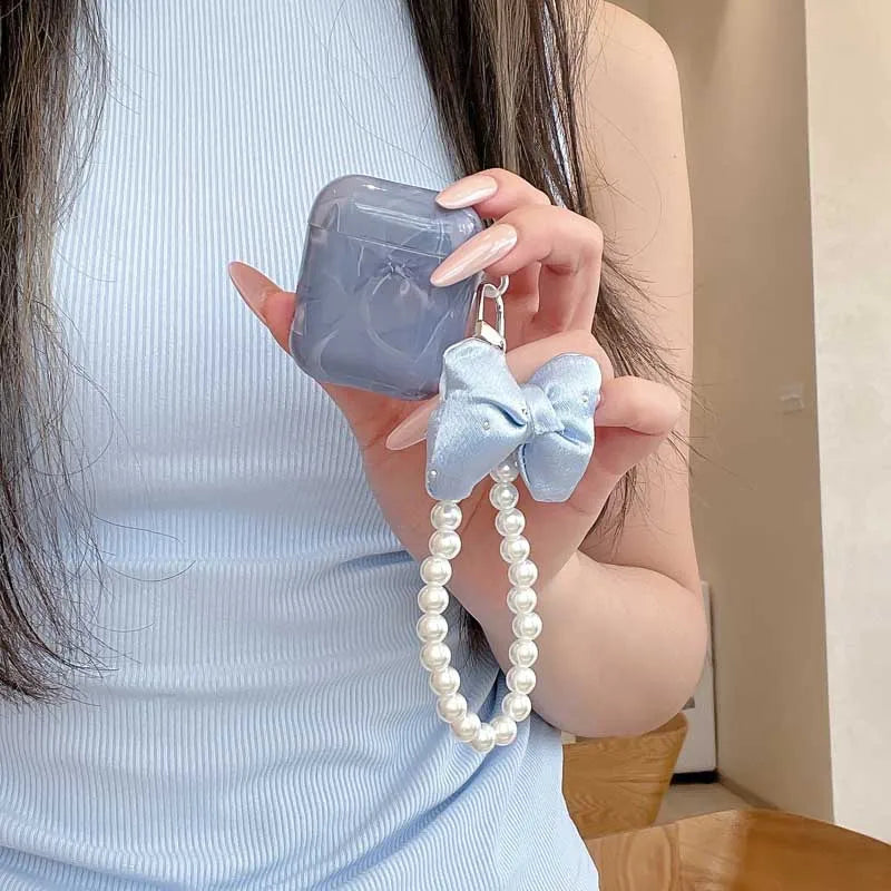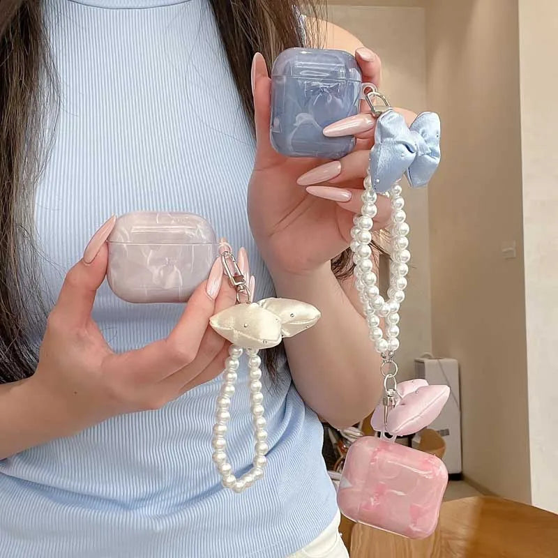 INS Korea Bow Knot Pearl Pendant Chain Earphone Case For Airpods Pro3 1 2 3 4 Cover Soft For Air Pods Pro Pro2nd Fundas