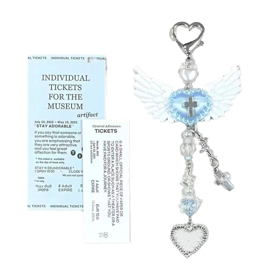 INS Korea Plush Wing Heart Beaded Charm Phone Pendant Crystal Wristband Keychain Bracelet Lanyard Cord