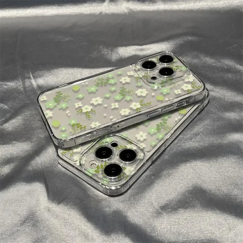 ins Light green flowers phone case For iPhone 16PRO 15 14 131211ProXRXS Max78 Plus12MiniY2K creativity Anti fall Case back Cover
