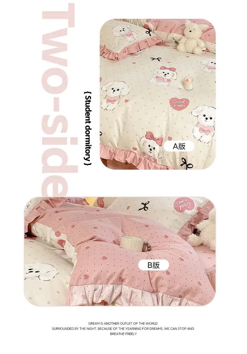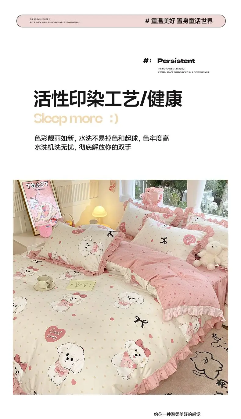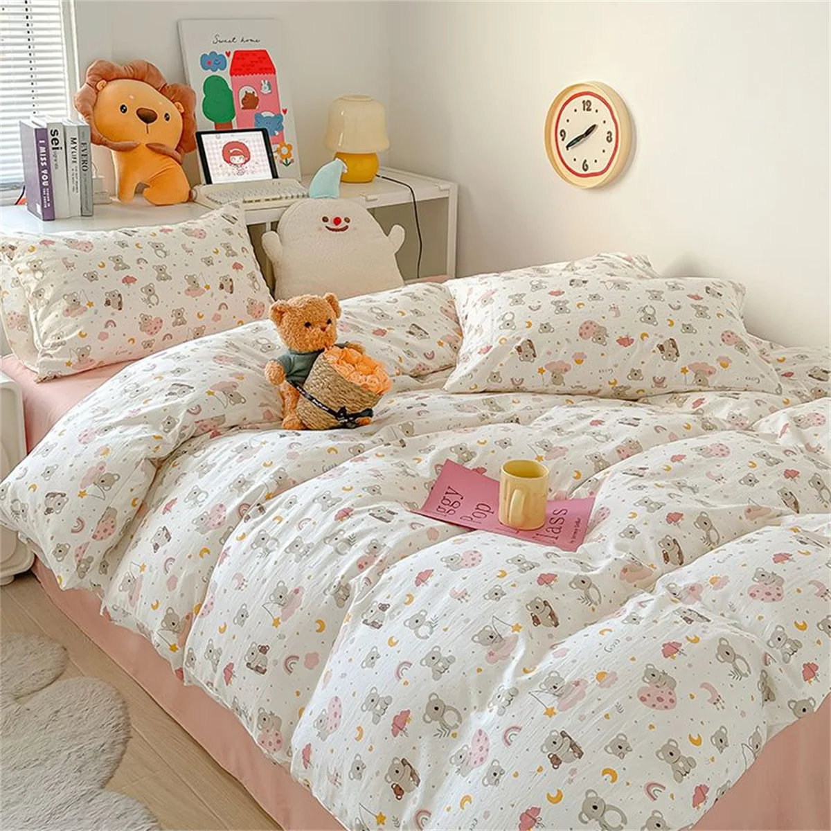 Ins Pink Bedding Set Bed Flat Sheet Pillowcase Twin Full Queen Princess Style Bed Linen Kids Girls Floral Duvet Cover