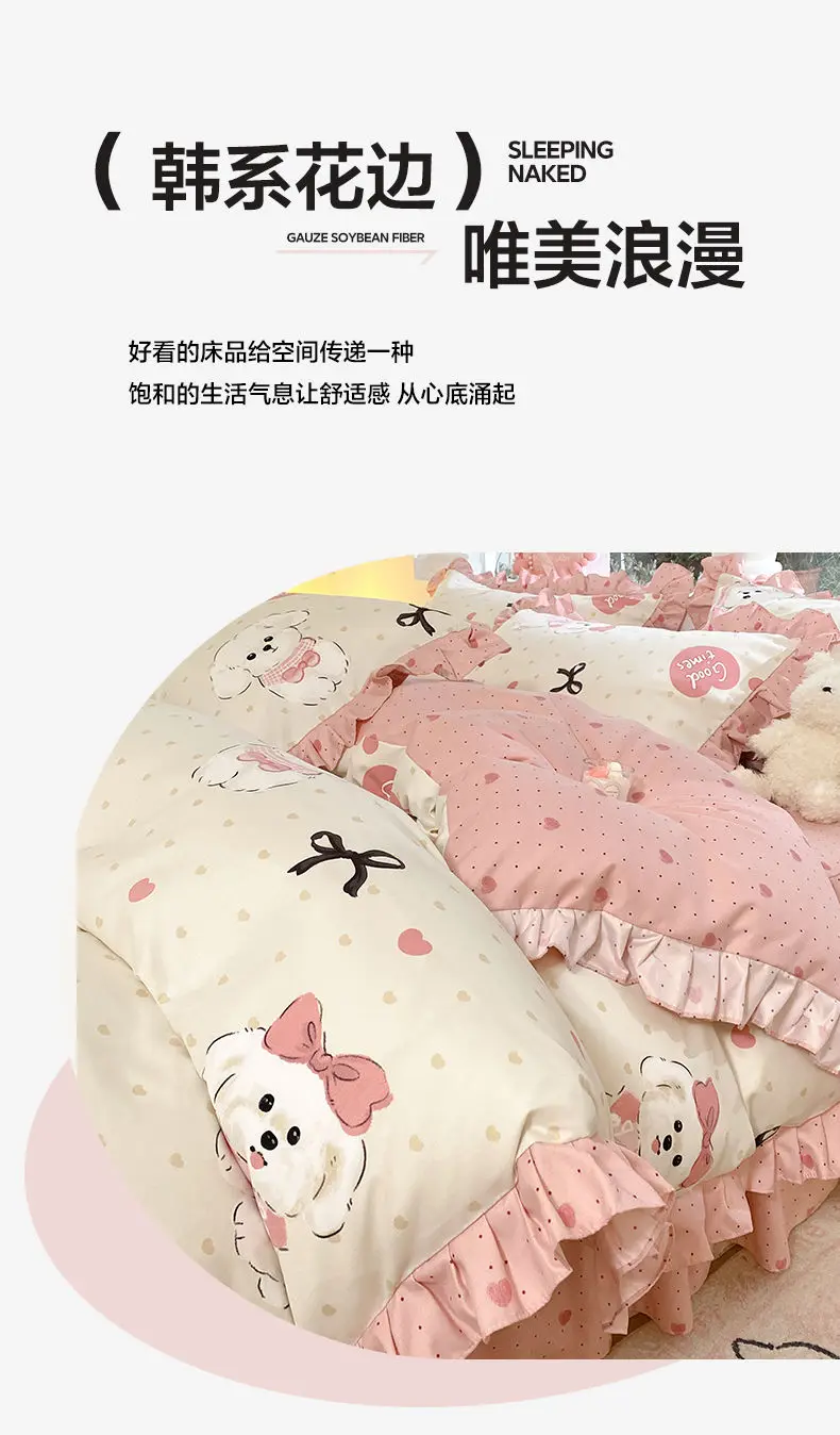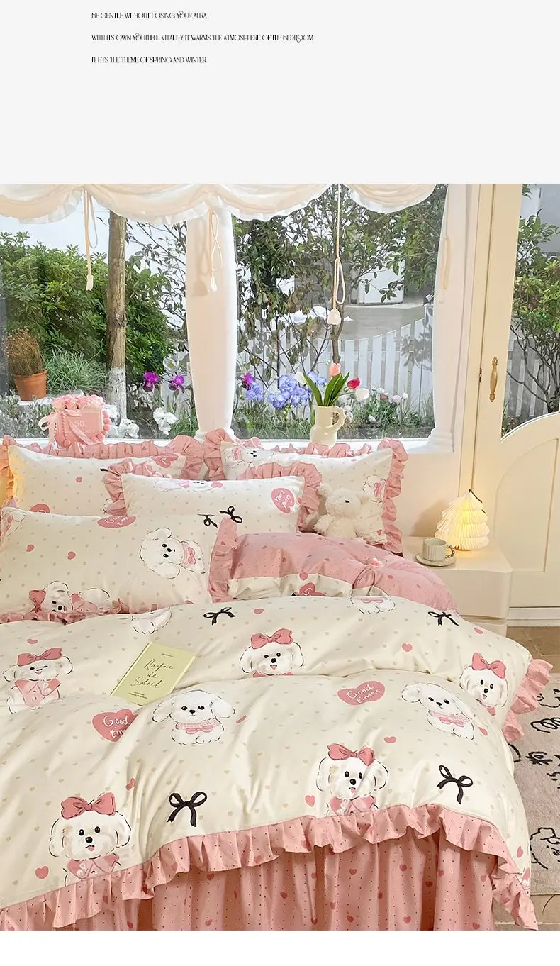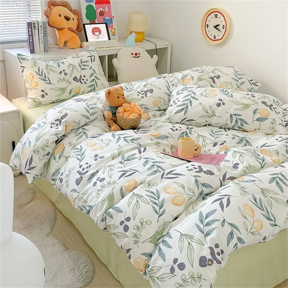 Ins Pink Bedding Set Bed Flat Sheet Pillowcase Twin Full Queen Princess Style Bed Linen Kids Girls Floral Duvet Cover