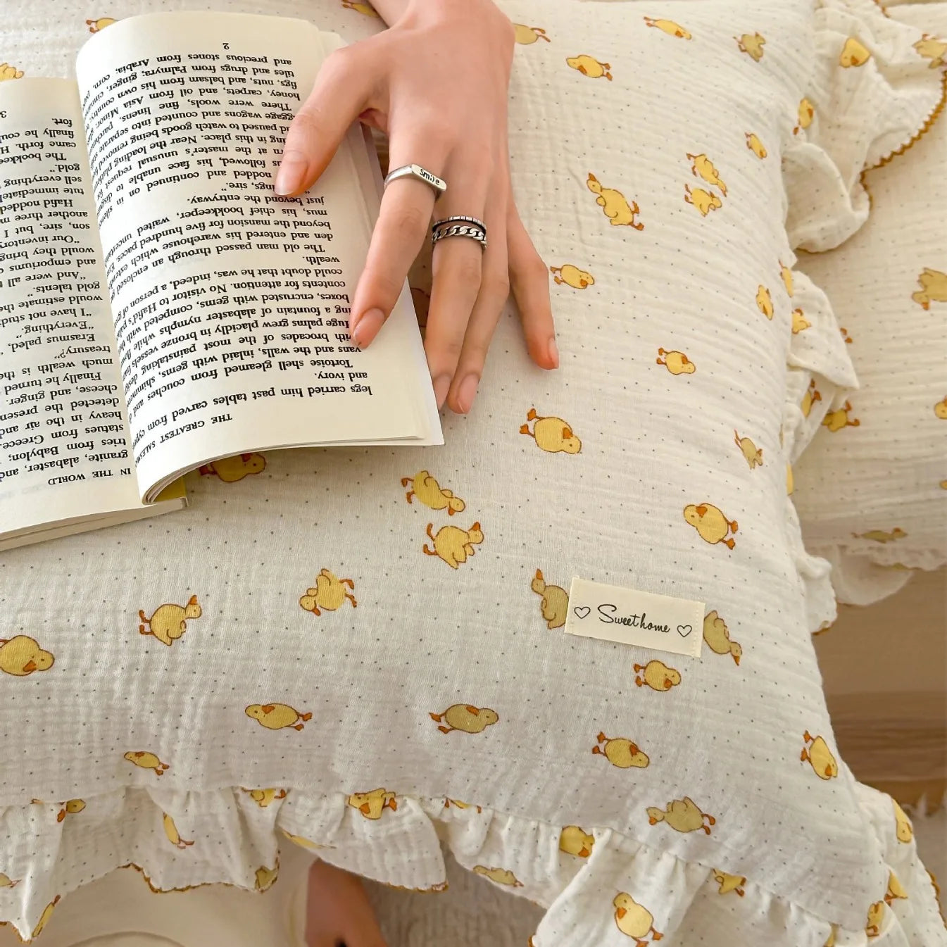 Feature: Gauze Cotton Ruffle Lace Pillowcase Bed Clothes