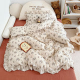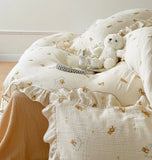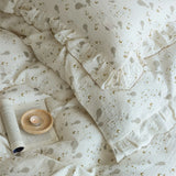 INS Princess Ruffle Edge Gauze 100% Cotton Pillow Case Breathable Duvet Cover Without Filler 3PCS Floral Home Bedding Set