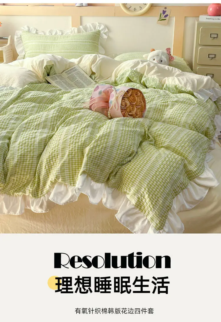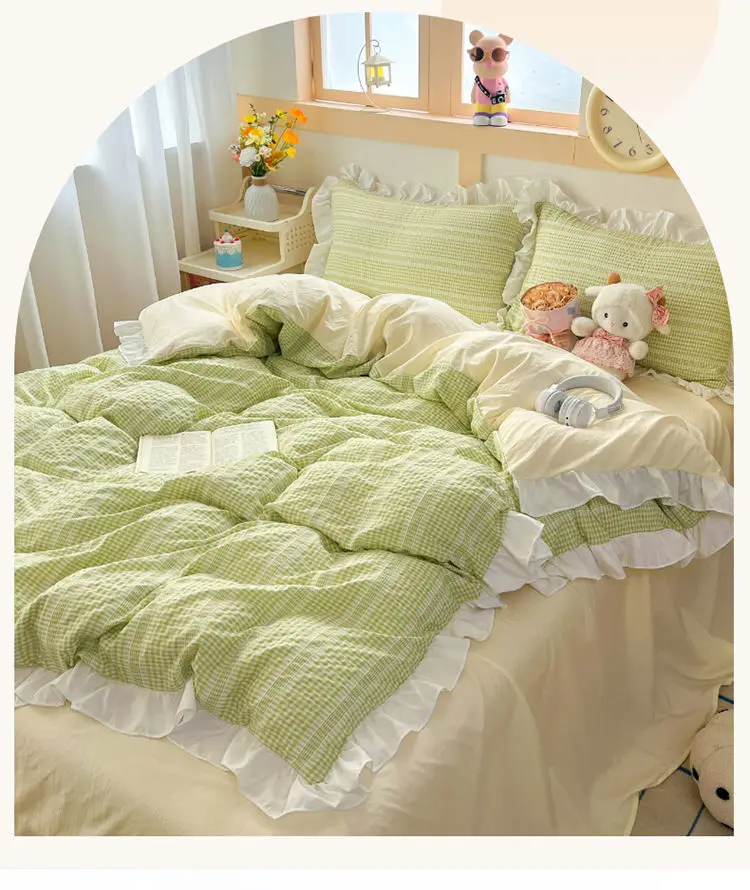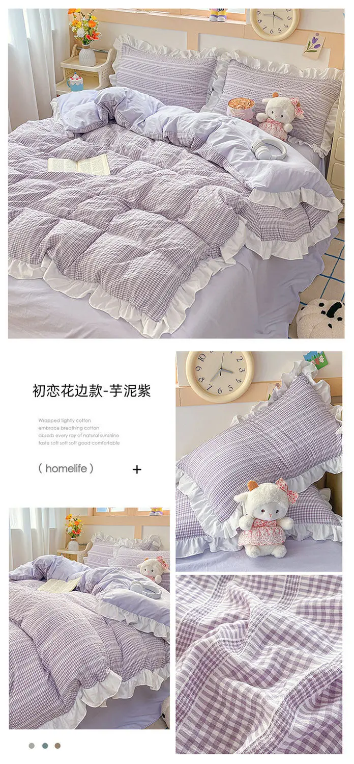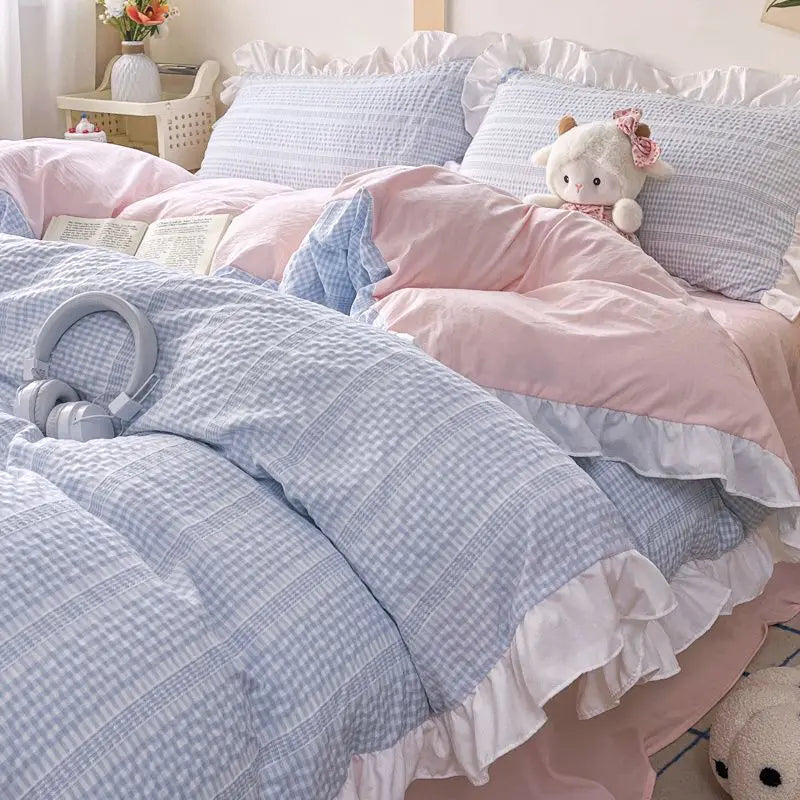 Ins Princess Style Bedding Sets Ruffle Blue Pink Girls Quilt Cover Romantic Bed Sheet Set Duvet Cover With Pillowcases 4pcs